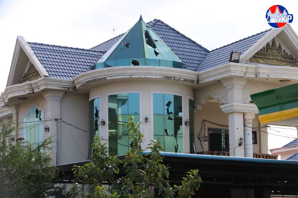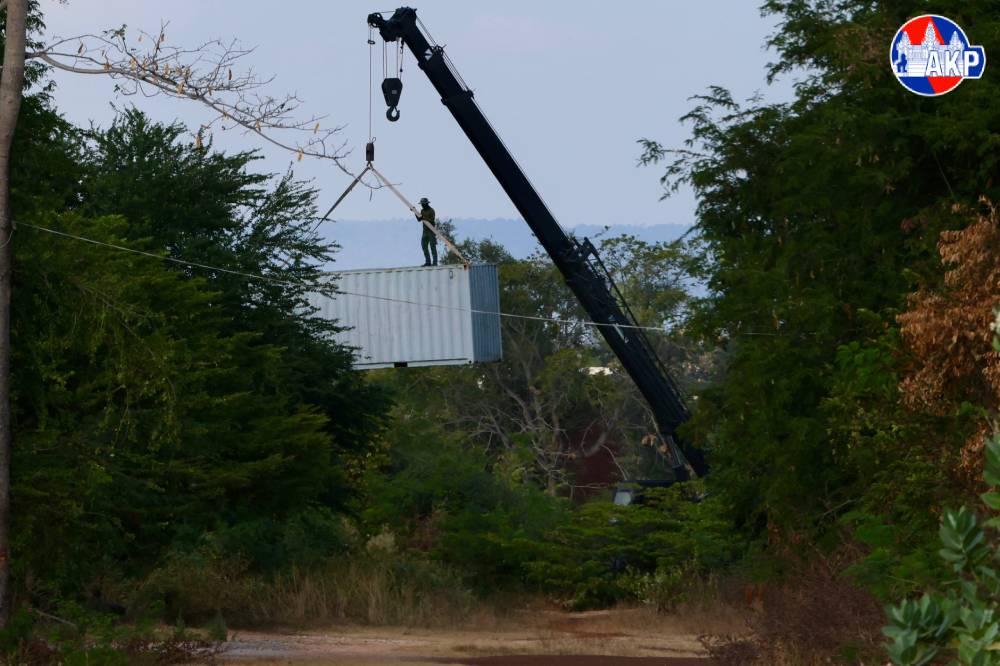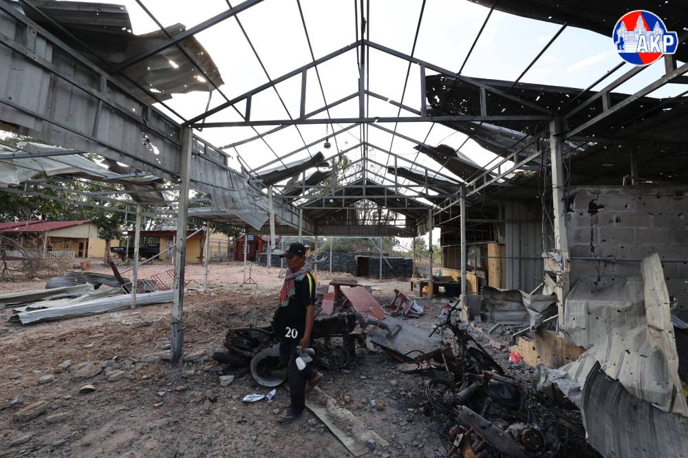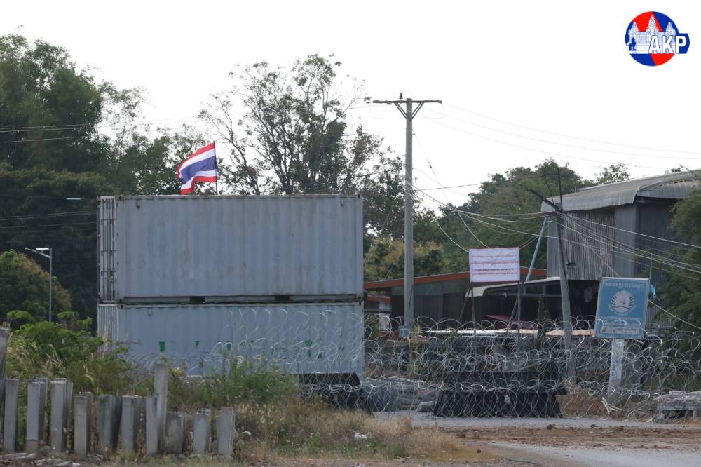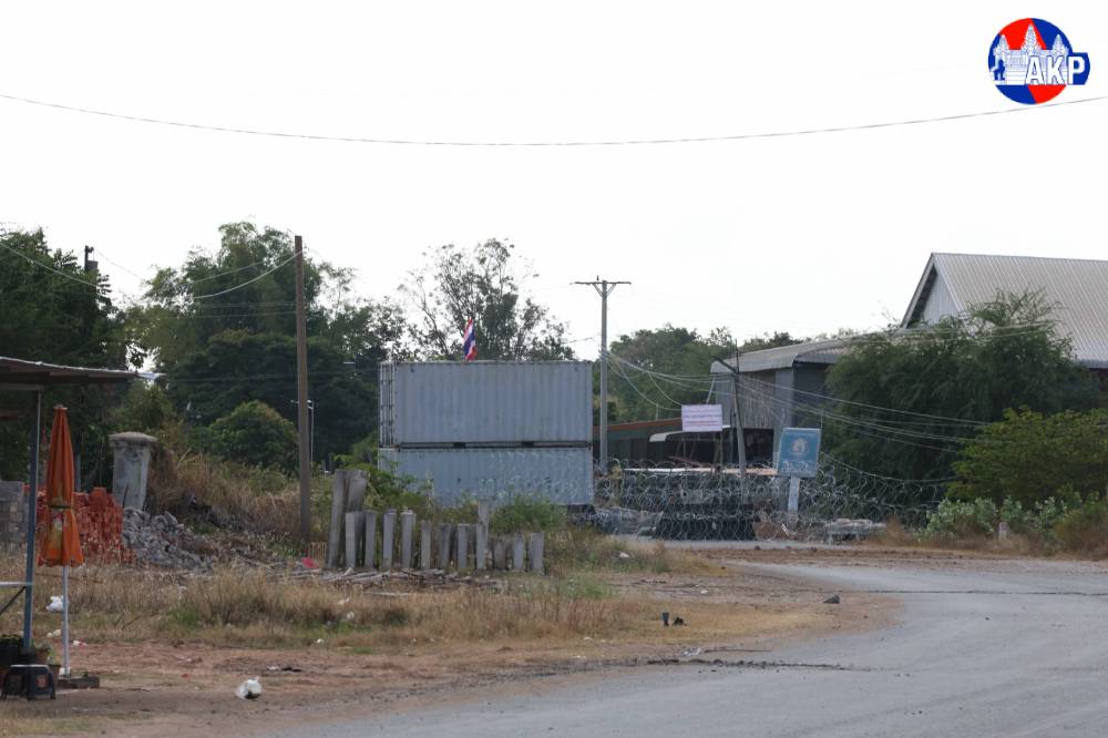 Scenes showing the impact of the war of aggression by Thai troops in the Boeung Trakuon area, located in Kok Romiet commune, Thmar Puok district, Banteay Meanchey province, and the violations of international law, as the invading Thai soldiers have encircled villages by placing shipping containers, effectively blockading the local communities.