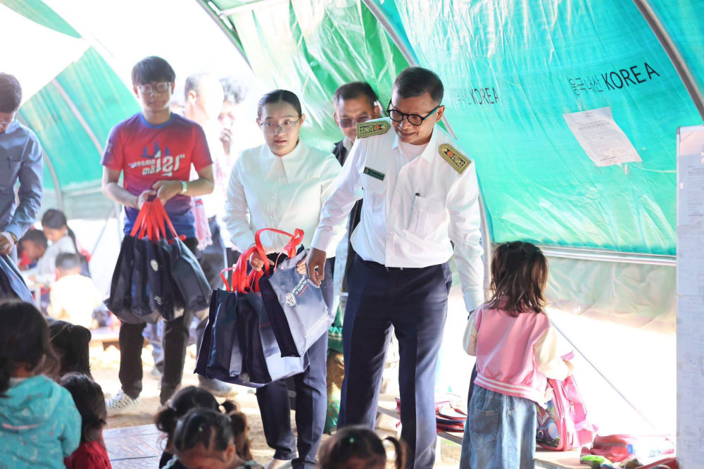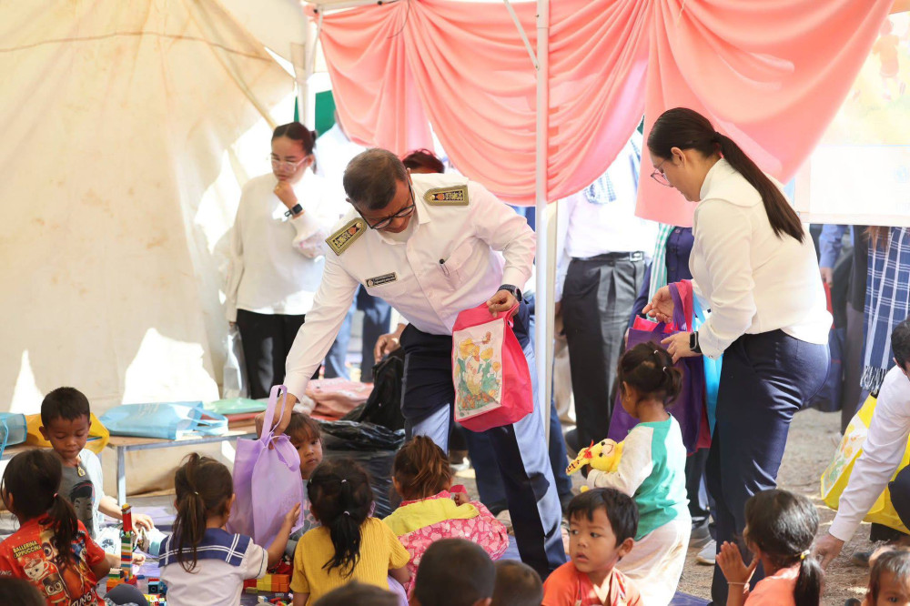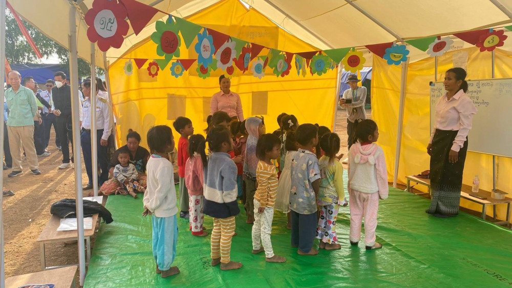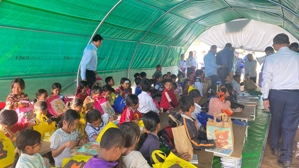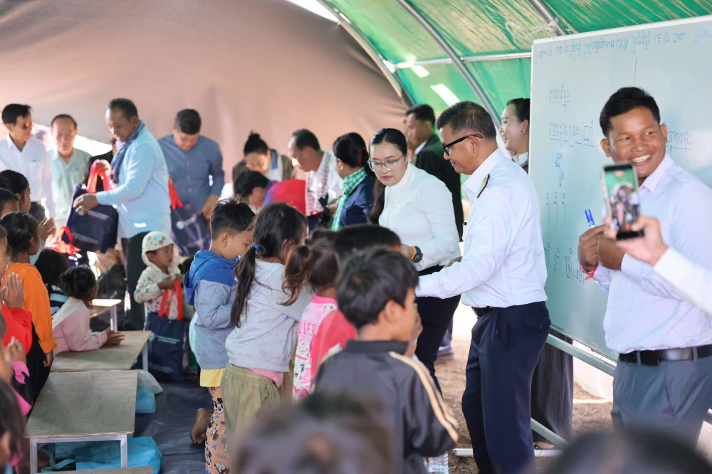 On the occasion, H.E. Dr. Hang Chuon Naron brought educational materials, food and necessary supplies to displaced students, teachers, district education officials and camp director, as well as provided incentive funds to teachers and relevant officials.