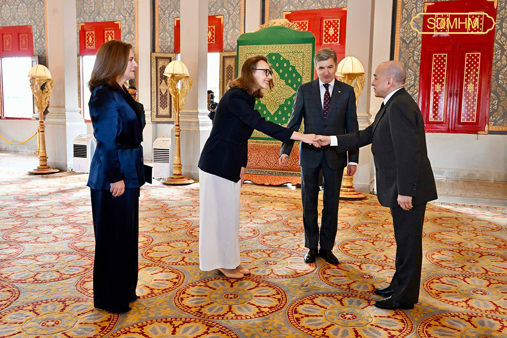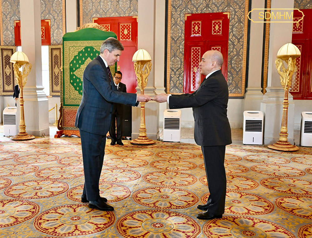 His Majesty Preah Bat Samdech Preah Boromneath Norodom Sihamoni (R, Pic. 1), King of the Kingdom of Cambodia, receives credentials from H.E. Darius Gaidys, the newly appointed Ambassador of the Republic of Lithuania to Cambodia, at the Royal Palace in Phnom Penh this morning.