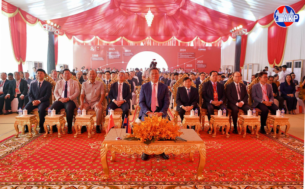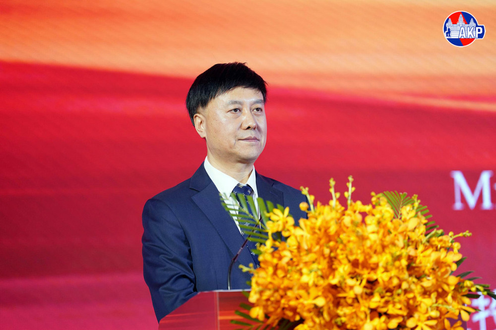 Deputy Prime Minister H.E. Sun Chanthol (Pic. 1), First Vice President of the Council for the Development of Cambodia (CDC), delivers his remarks while he was presiding over this morning the official inauguration ceremony of a car tyre factory located in the Xin Bavet Special Economic Zone in Bavet, Svay Rieng province, with an initial investment of nearly US$300 million.