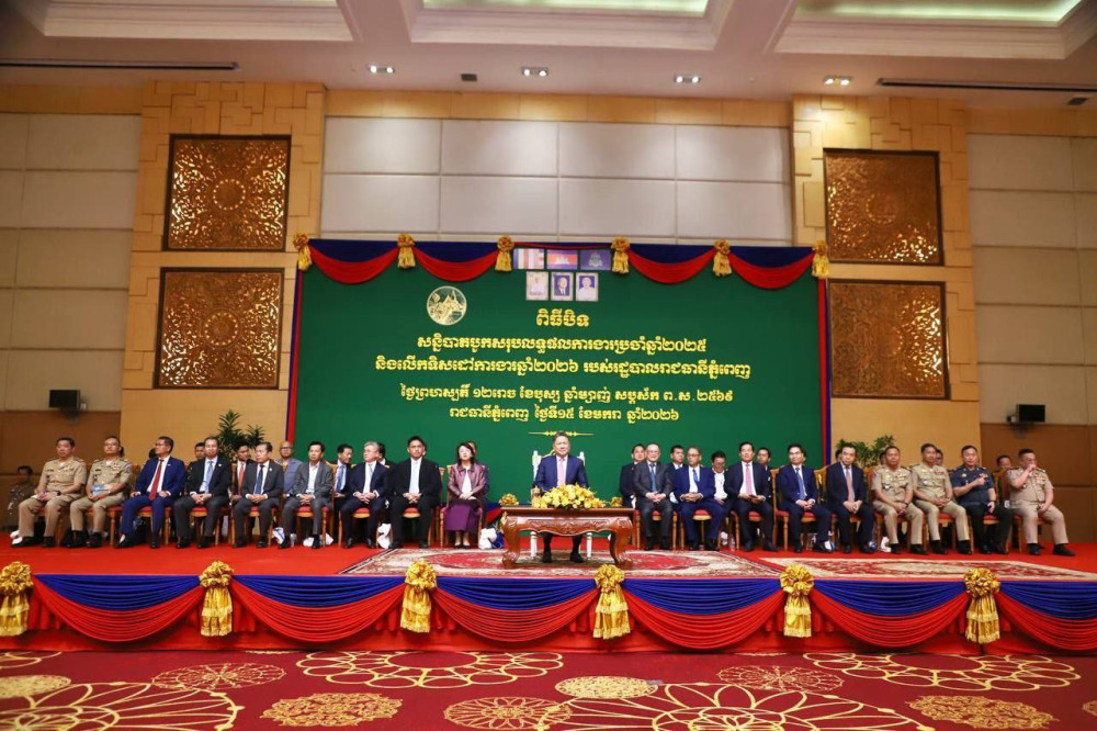 H.E. Sun Chanthol (Pic. 1), Deputy Prime Minister and First Vice President of the Council for the Development of Cambodia, addresses the participants while he was presiding over here at Sokha Phnom Penh Hotel this afternoon the closing ceremony of the annual meeting of the Phnom Penh Municipal Administration to review its work achievements in 2025 and set forth new objectives for 2026.