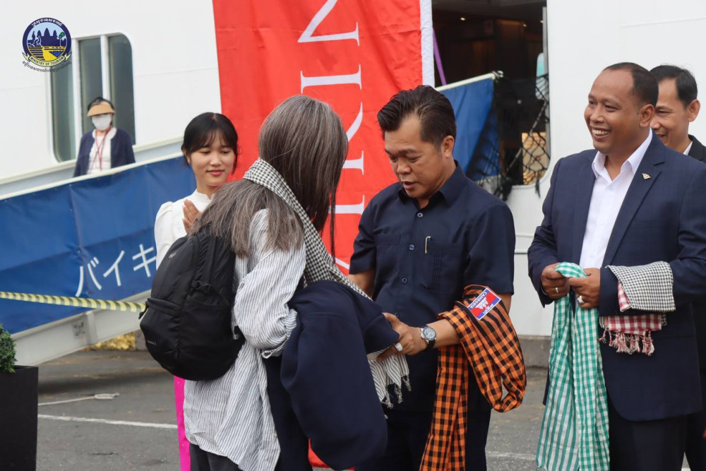 The management of the Preah Sihanouk Provincial Department of Tourism warmly welcomes the arrival of 266 tourists of 18 nationalities and 330 crew members who disembarked from the cruise ship ZHAO SHANG YI DUN (China), upon their arrival in Sihanoukville, Preah Sihanouk province this morning.