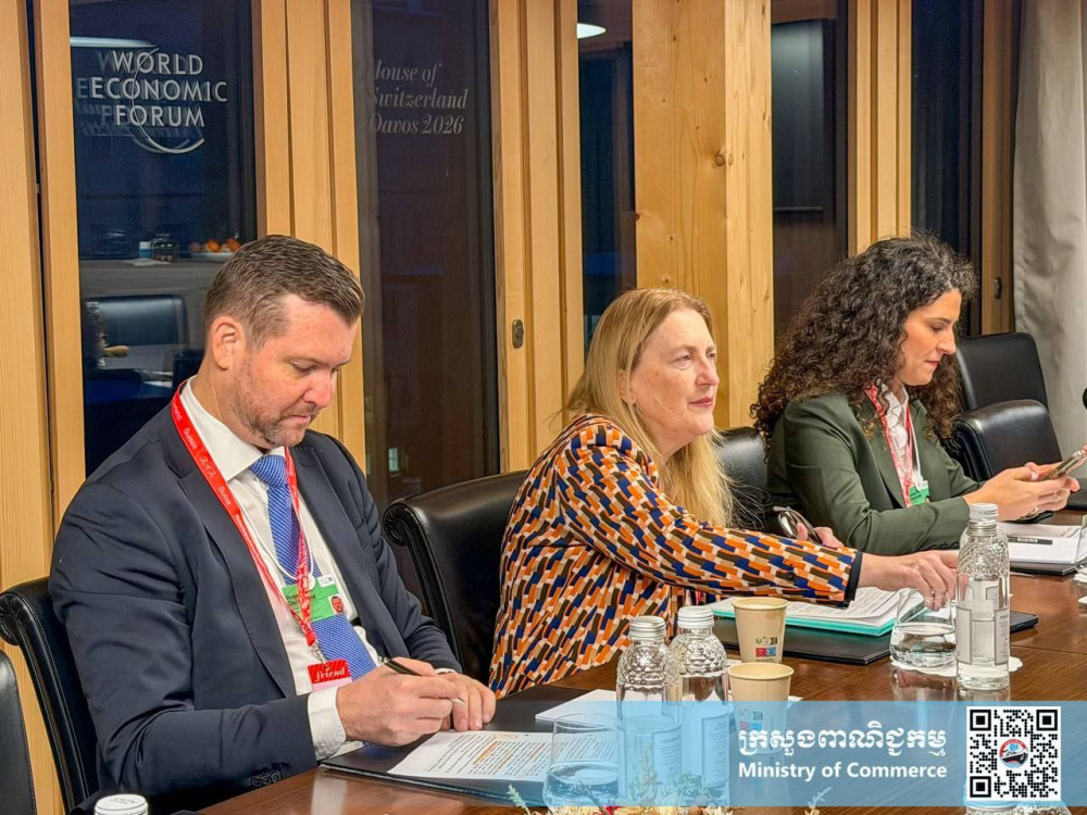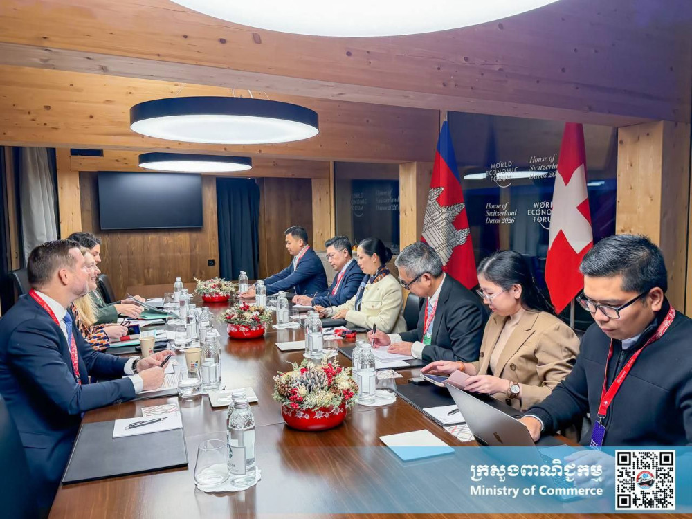 Cambodia's Minister of Commerce H.E. Mrs. Cham Nimul (C, Pic. 1) holds talks with H.E. Ms. Helene Budliger Artieda (C, Pic. 2), State Secretary of Economic Affairs of the Swiss Confederation, in Davos-Klosters, Switzerland on Jan. 20.