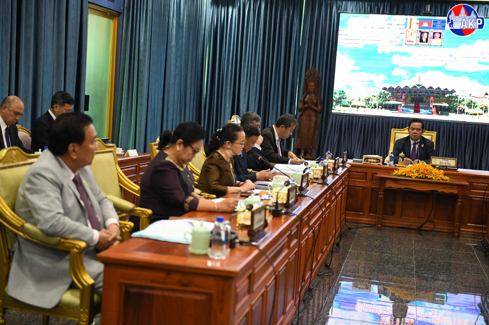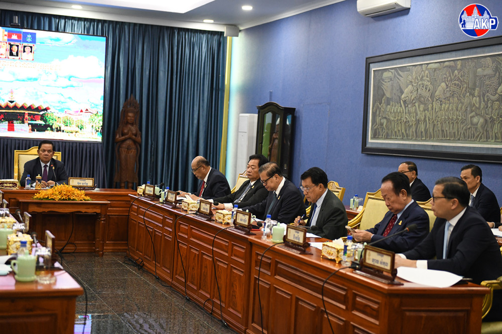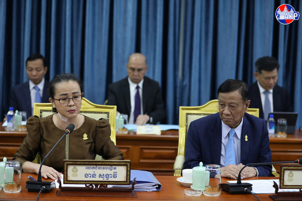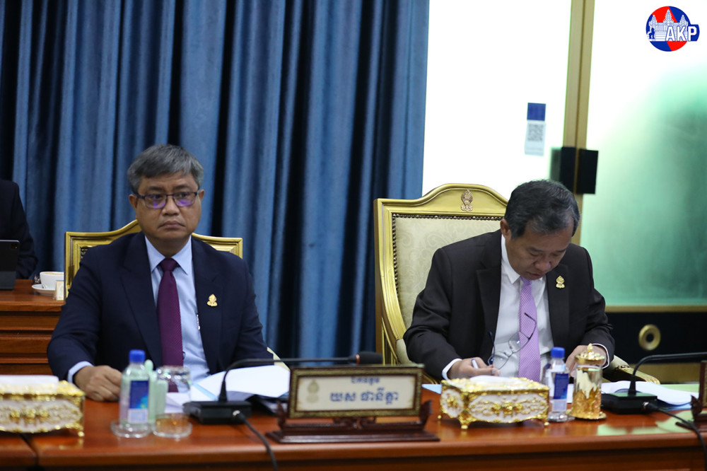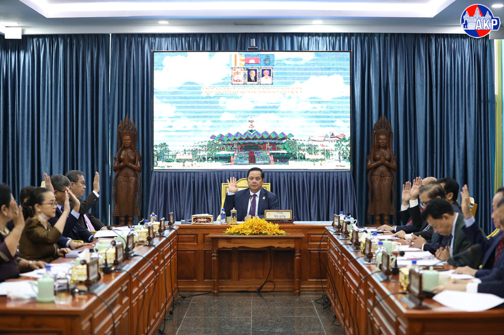 H.E. Ouch Borith (Pic. 1), First Vice President of the Senate of the Kingdom of Cambodia, presides over a meeting of the Standing Committee of the 5th Legislature of Senate, at the Senate Palace in Phnom Penh this morning.