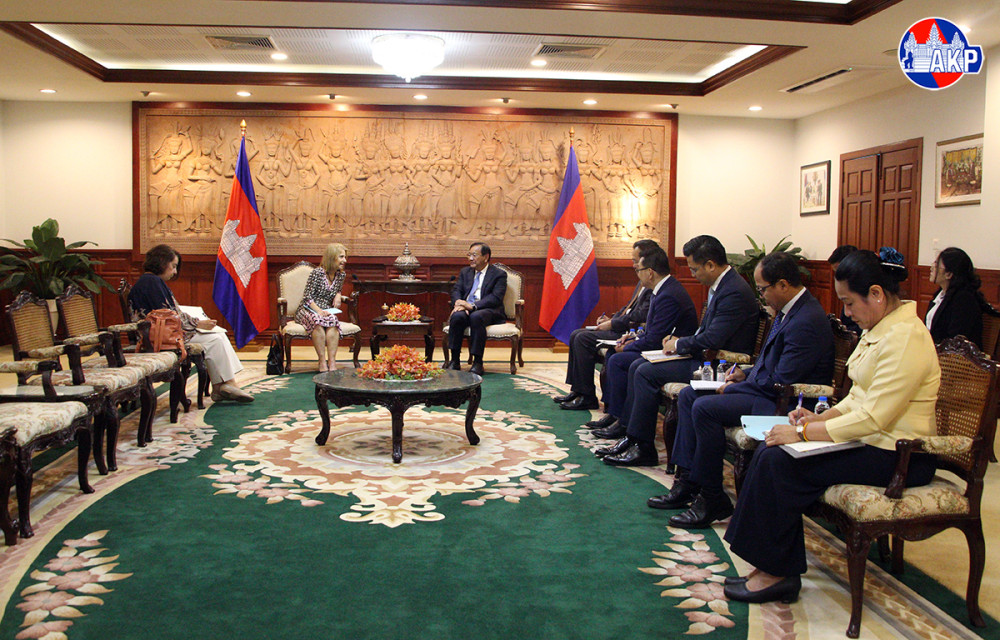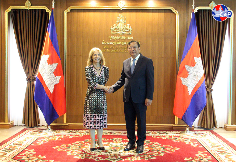 H.E. Prak Sokhonn (R, Pic. 1), Deputy Prime Minister and Minister of Foreign Affairs and International Cooperation of Cambodia, holds talks here at the Ministry’s headquarters this morning with H.E. Ms. Vivian Loss Sanmartin, Ambassador Extraordinary and Plenipotentiary of the Federative Republic of Brazil to Cambodia.