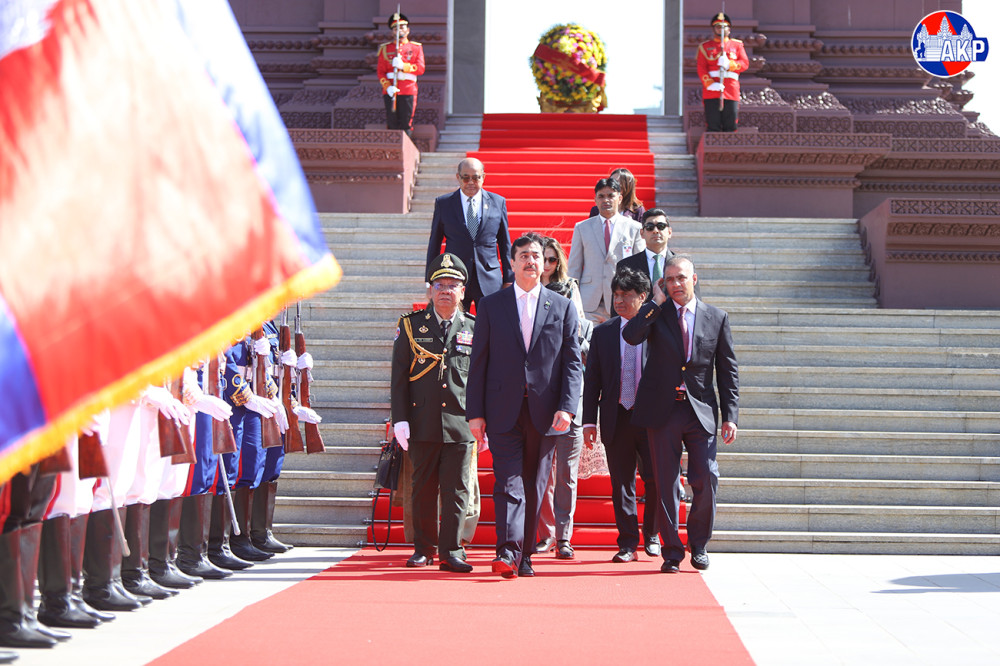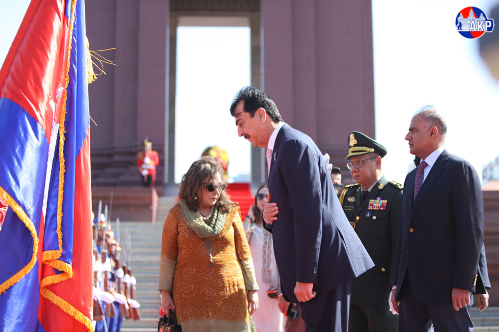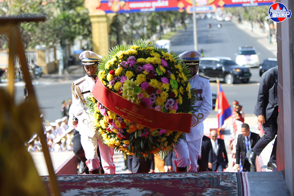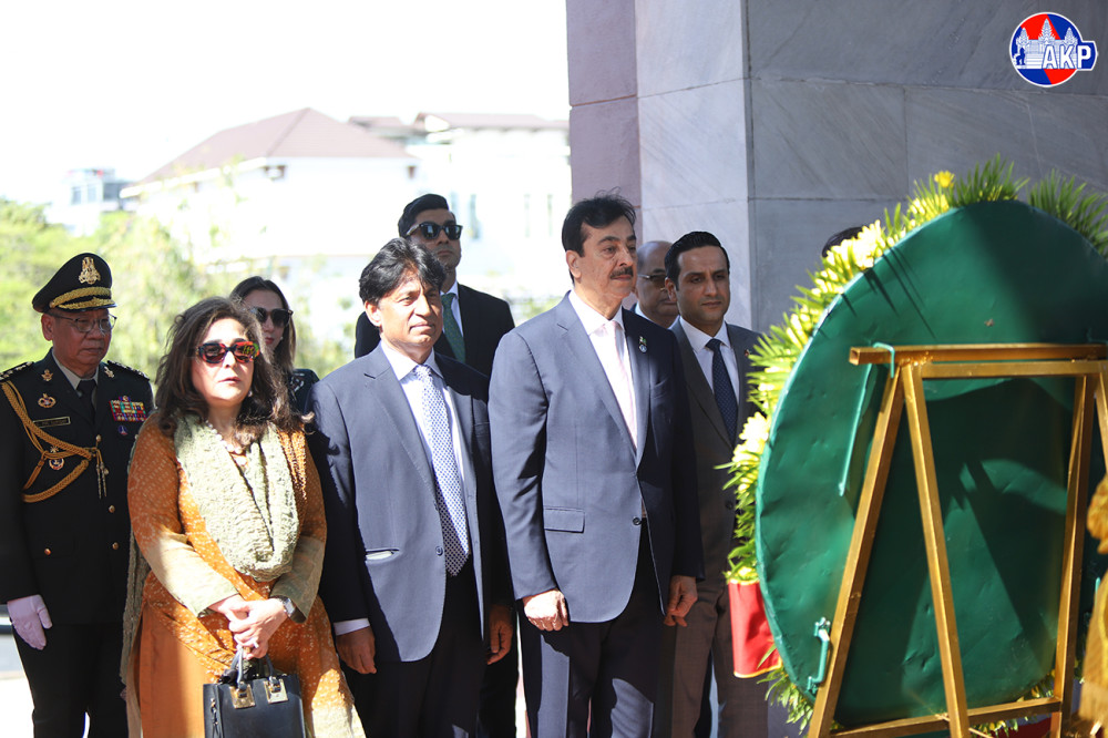H.E. Syed Yusuf Raza Gillani (Pic. 1), Honourable Chairman of the Senate of the Islamic Republic of Pakistan, lays wreath and pays respects at the Independence Monument in Phnom Penh this afternoon, as part of his four-day (Feb. 2-5) official visit to the Kingdom of Cambodia.