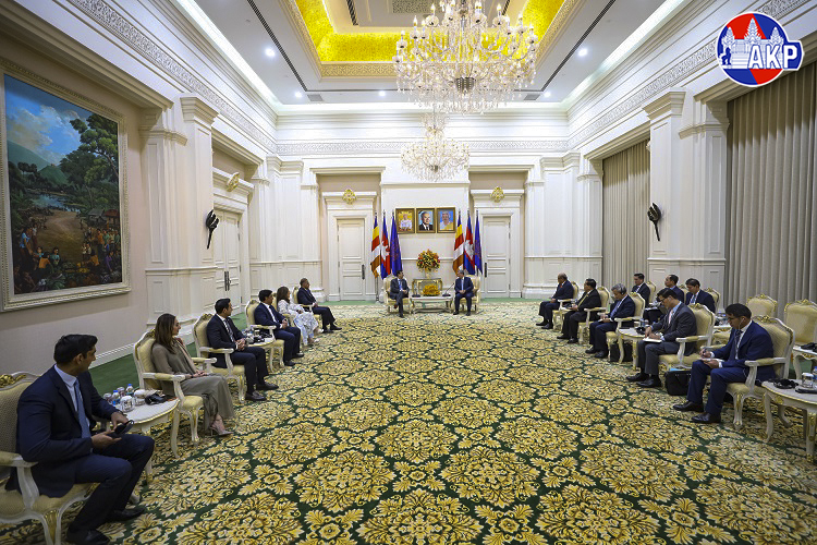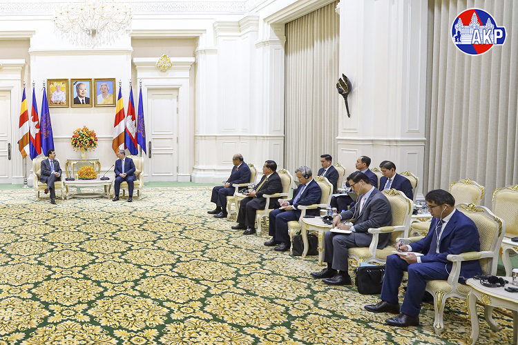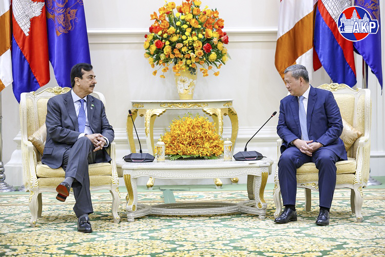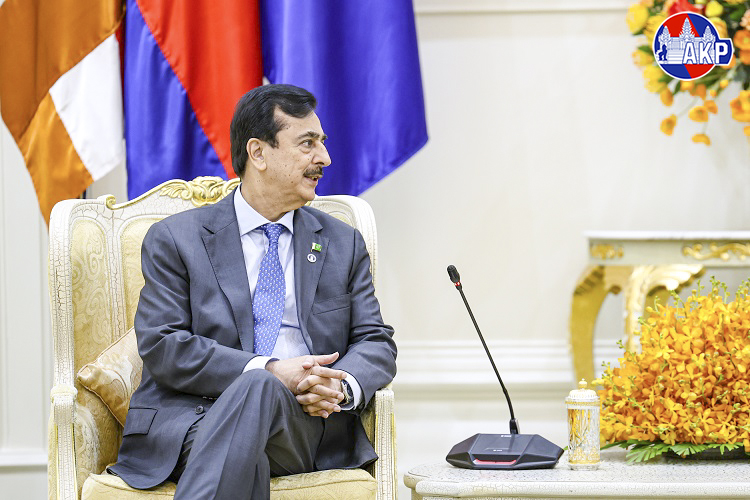 Cambodia’s Prime Minister Samdech Moha Borvor Thipadei Hun Manet (R, Pic. 1) poses for a photo with visiting H.E. Syed Yusuf Raza Gillani, Honourable Chairman of the Senate of the Islamic Republic of Pakistan, prior to their meeting at the Peace Palace in Phnom Penh this afternoon, as part of H.E. Gillani’s four-day (Feb. 2-5) official visit to Cambodia.
