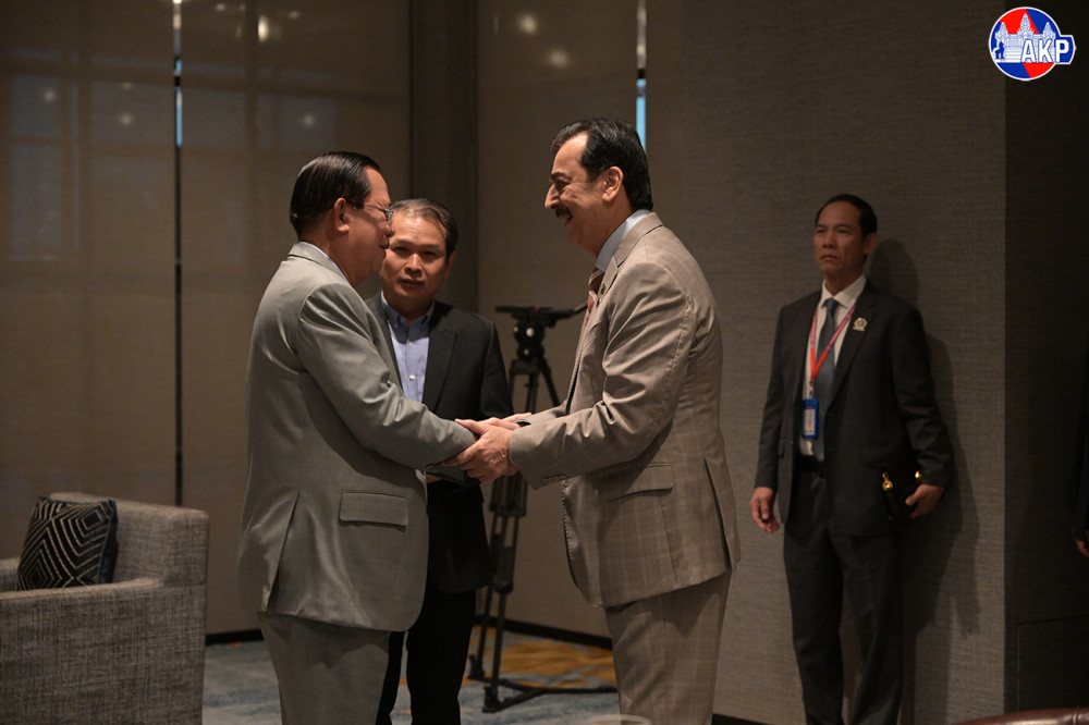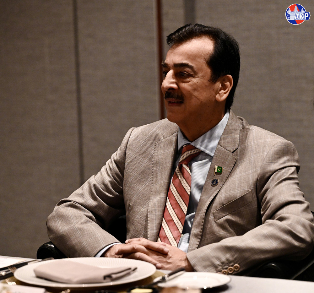 Cambodia’s Senate President Samdech Akka Moha Sena Padei Techo Hun Sen (L, Pic. 1) greets visiting H.E. Syed Yusuf Raza Gillani, Honourary Chairman of the Senate of the Islamic Republic of Pakistan, prior to their breakfast at the Hyatt Regency Phnom Penh this morning.