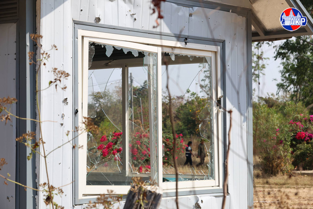 General View of Damaged Civilian Infrastructure, Explosive Remnants, and Shipping Containers Placed by Thai Troops at Cambodia’s Prey Chan Village