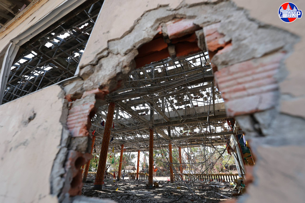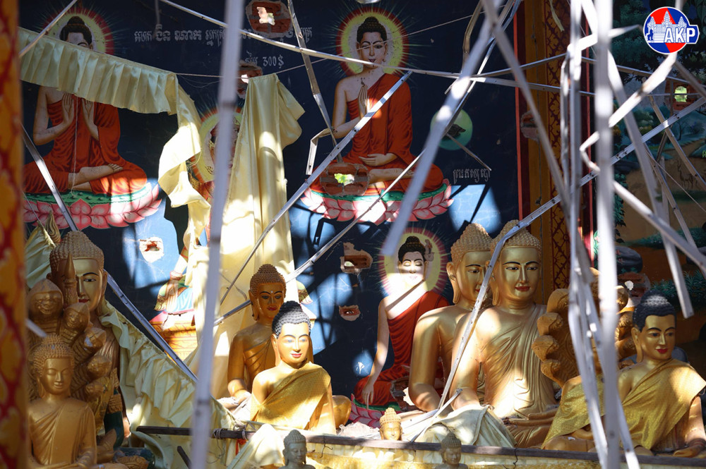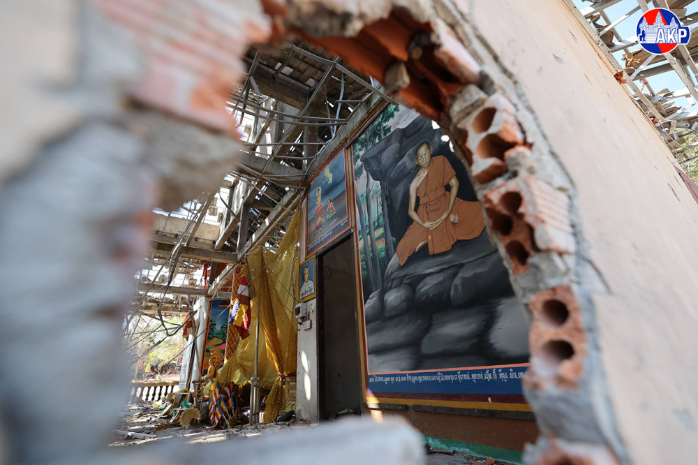 Tamone Senchey pagoda, located in Tamone Senchey village, Kok Mon commune, Banteay Ampil district, Oddar Meanchey province, suffer severe damage caused by shelling and bombing during the first and second Thai invasions.