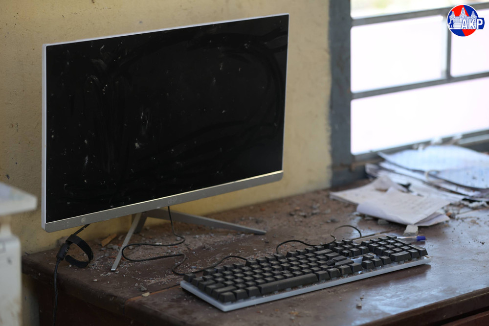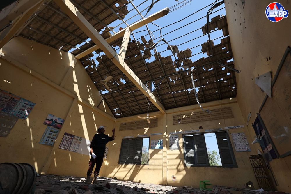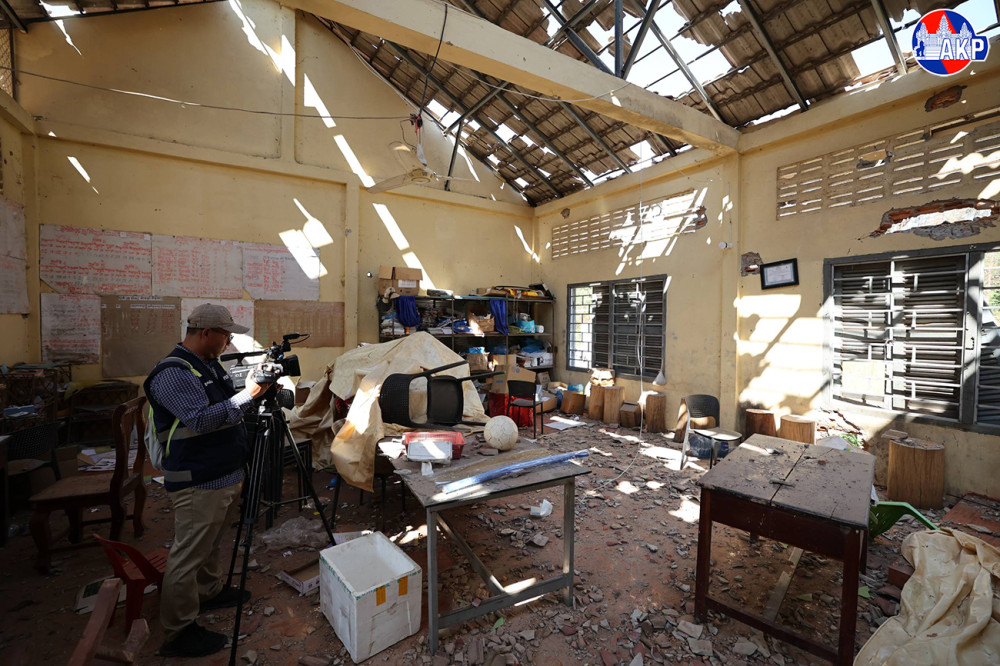 Images of severe damage suffered by Tamoun Senchey Primary School, located about 2 kilometres from the border in Kok Mon commune, Banteay Ampil district, Oddar Meanchey province due to shelling and bombing by Thai soldiers during their first and second wars of aggression against Cambodia.