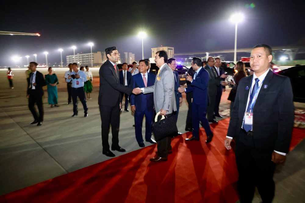 H.E. Syed Yusuf Raza Gillani (2nd L, Pic. 1), Honorary Chairman of the Senate of the Islamic Republic of Pakistan, boards a special aircraft at Techo International Airport in Kandal province this evening after successfully concluding his four-day official visit to Cambodia.