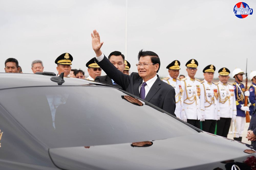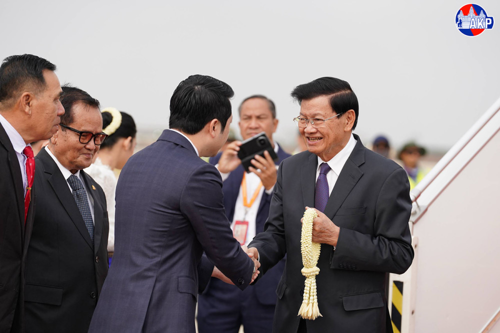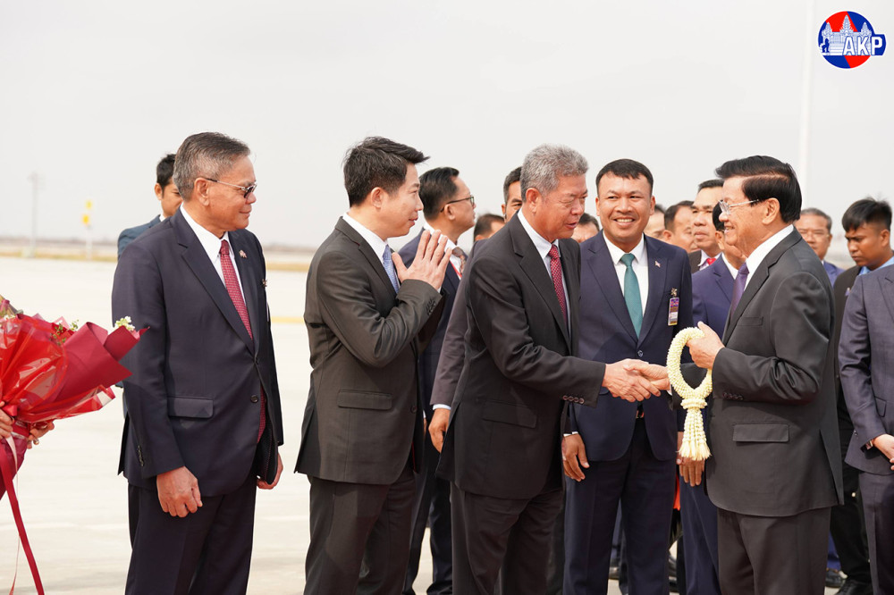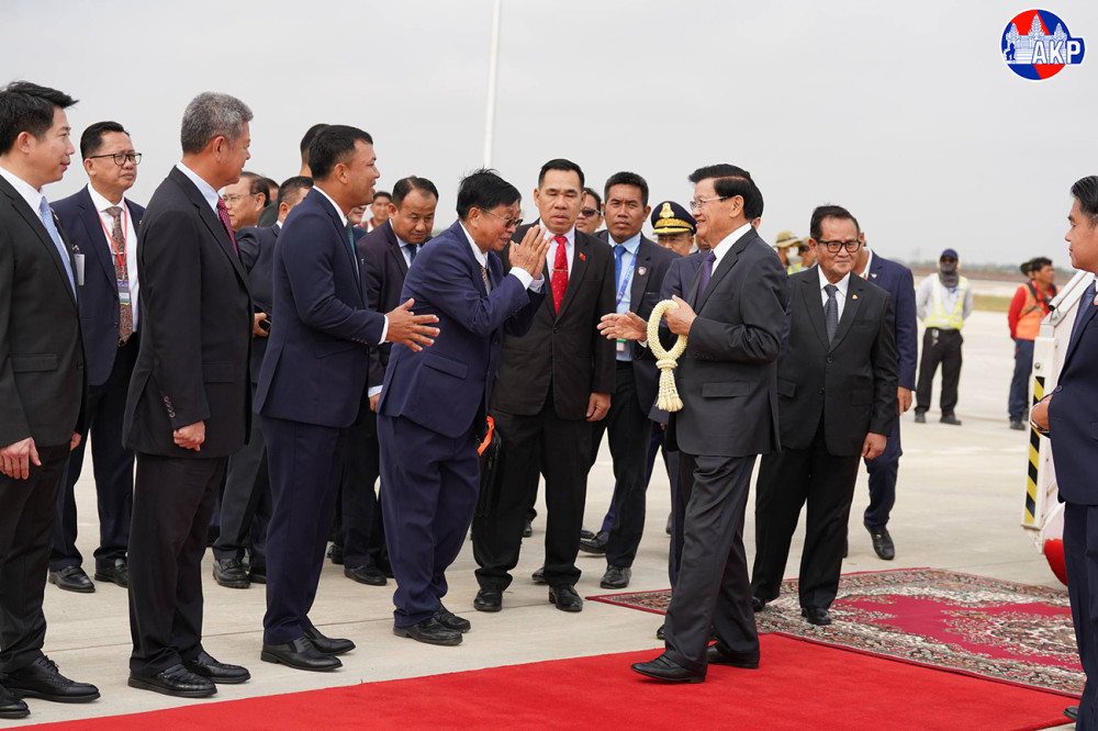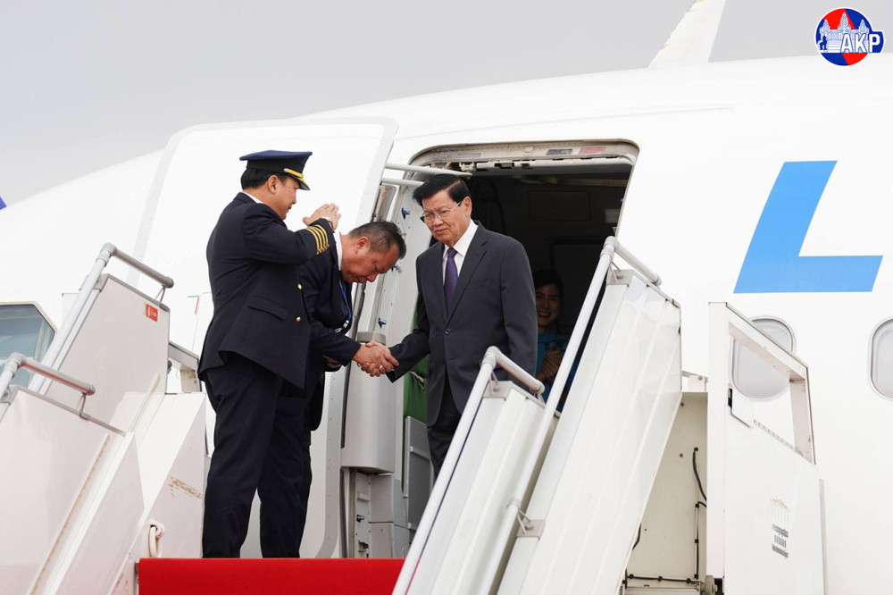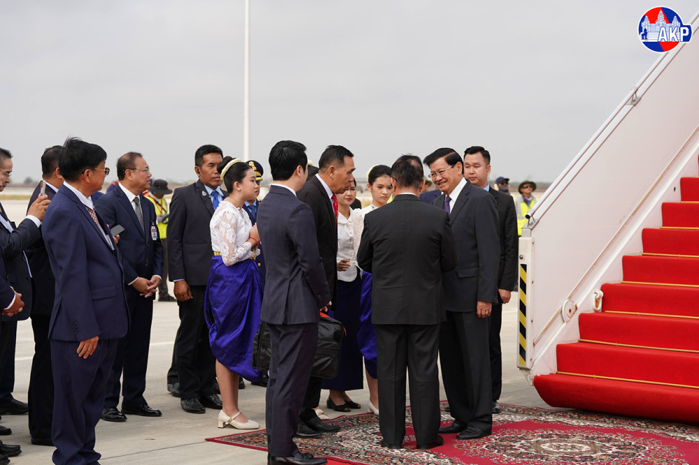 H.E. Dr. Thongloun Sisoulith (Pic. 1), General Secretary of the Lao People's Revolutionary Party and President of the Lao People's Democratic Republic, disembarks from a special aircraft upon his arrival at Techo International Airport in Kandal province this morning to begin his two-day (Feb. 6-7) state visit to the Kingdom of Cambodia.