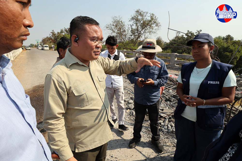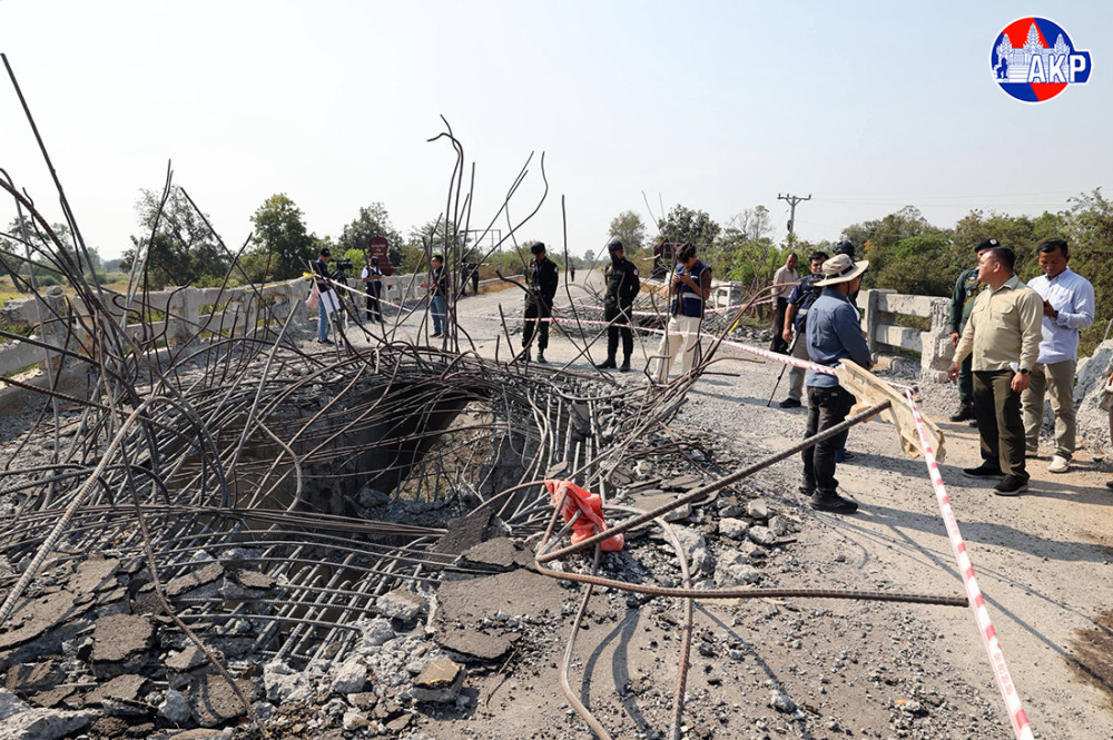 General view of O’Chik Bridge, located in Cheung Tean village, Cheung Tean commune, Chongkal district, Oddar Meanchey province, adjacent to Srei Snam district of Siem Reap province, approximately 70 kilometres from the border, which was completely destroyed during the second war of invasion conducted by Thai military against Cambodia in December 2025.
