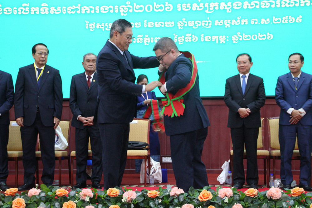 Deputy Prime Minister H.E. Sok Chenda Sophea (Pic. 1) delivers closing remarks while presiding over the Ministry of Public Works and Transport’s 2025 Annual Review Meeting and 2026 Direction-Setting Session at the ministry’s headquarters in Phnom Penh this afternoon.