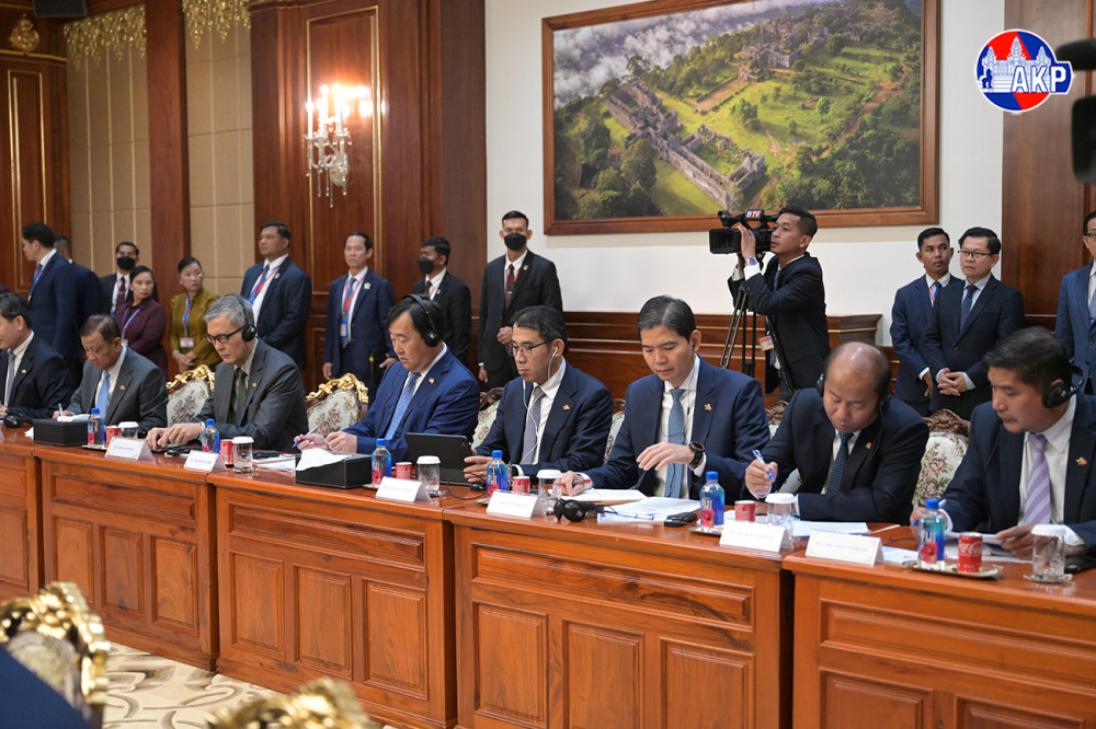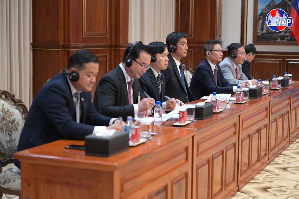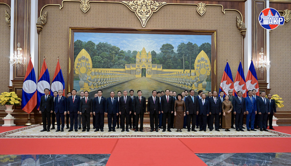 Samdech Akka Moha Sena Padei Techo Hun Sen (R, Pic. 1), President of the Cambodian People’s Party, poses for a photo with visiting H.E. Dr. Thongloun Sisoulith, General Secretary of the Lao People’s Revolutionary Party, prior to their 16th bilateral summit, at the Solidarity Palace here this morning.