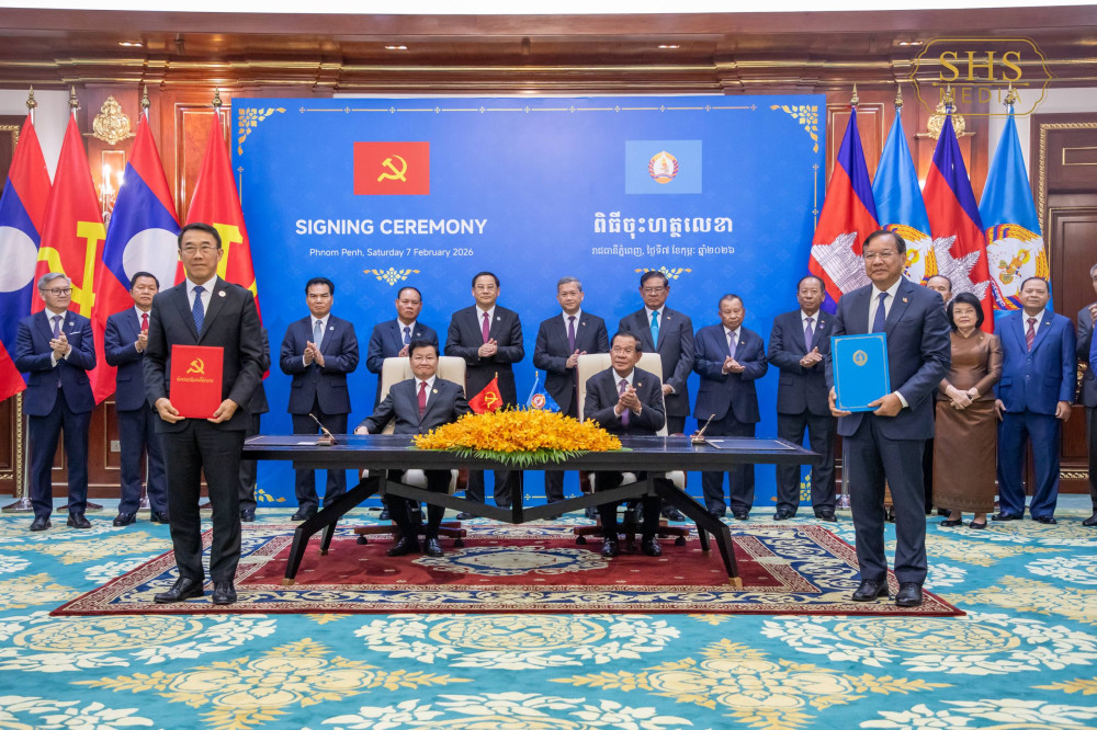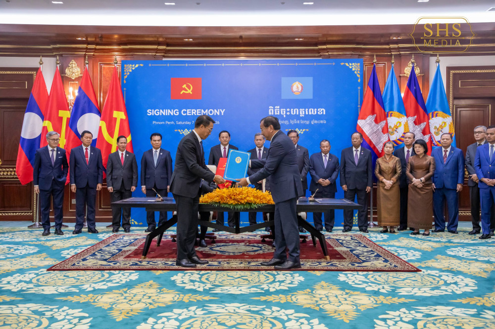 Cambodian and Lao Party Leaders Preside over a Signing Ceremony