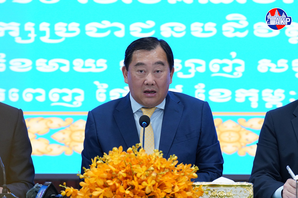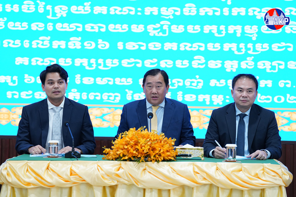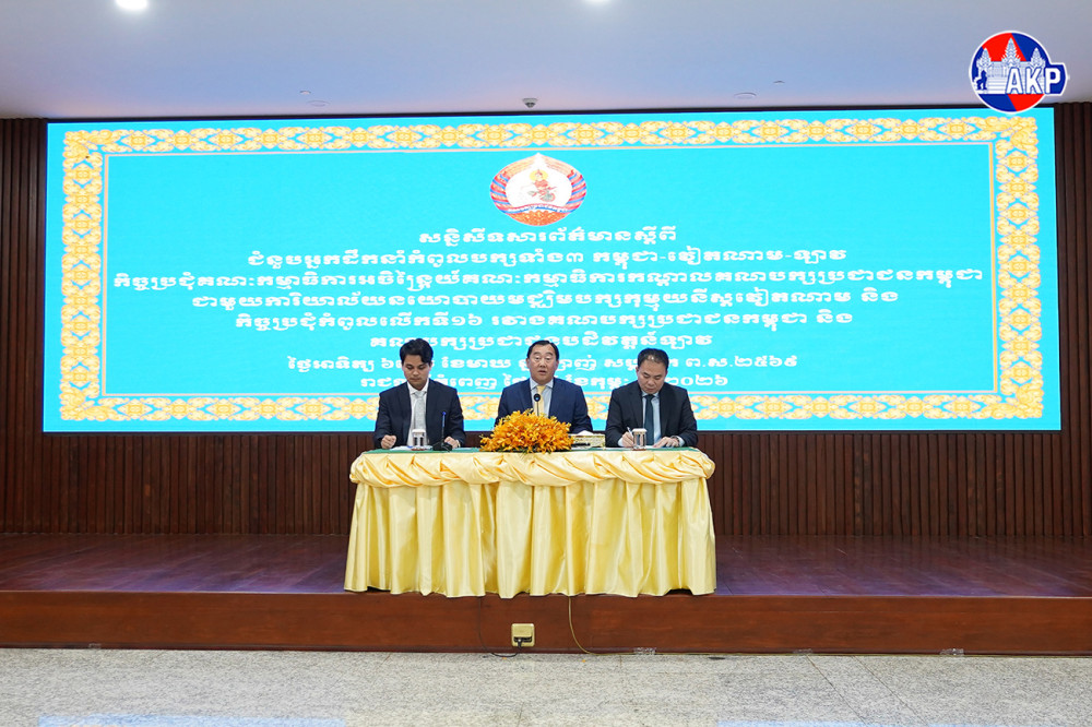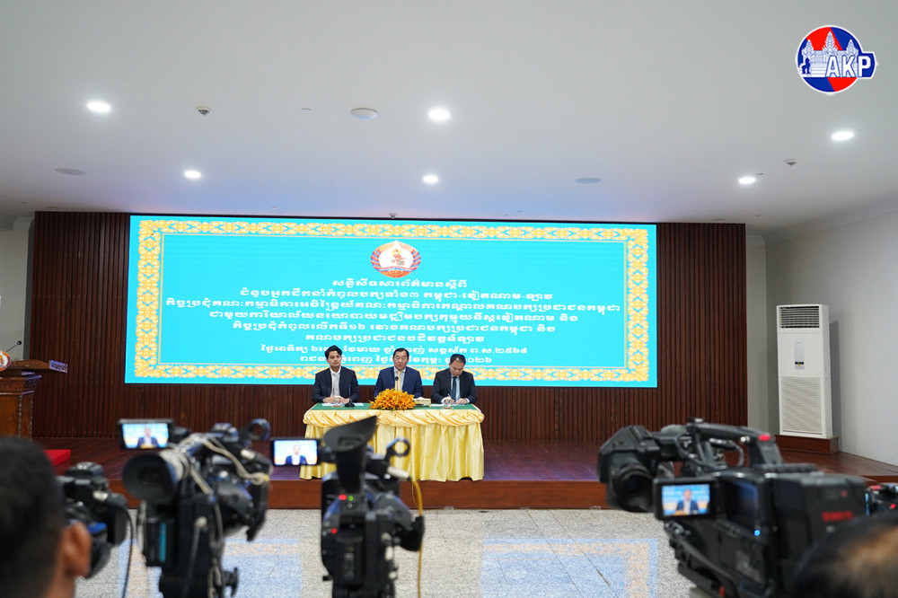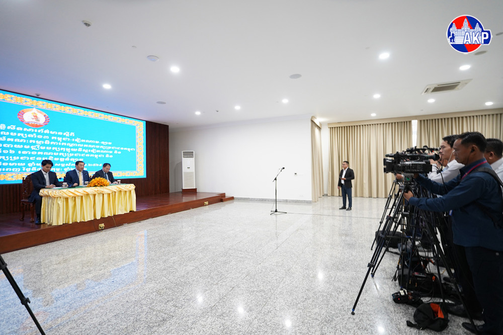The spokespersons of the Cambodian People's Party, led by H.E. Suos Yara (Pic. 1), hold a press conference on the outcomes of the bilateral and trilateral leaders’ meetings of the Cambodia-Laos-Vietnam parties hosted by Cambodia at the January 7 Palace in Phnom Penh, this morning.
