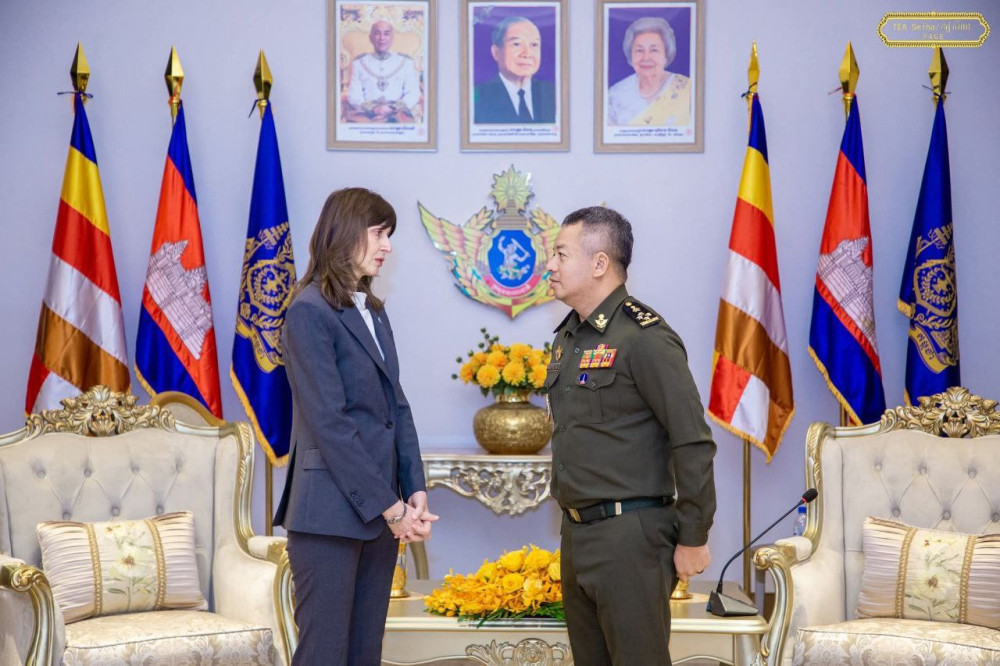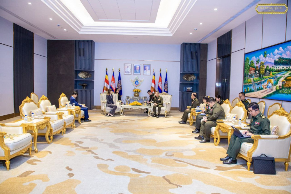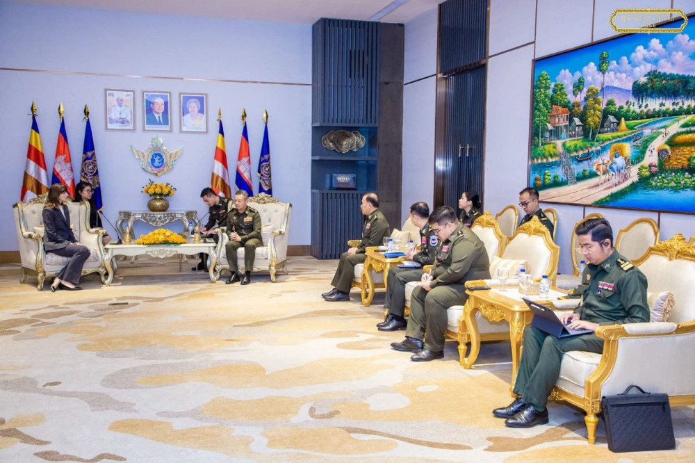 H.E. Gen. Tea Seiha (R, Pic. 1), Deputy Prime Minister and Minister of National Defence, receives newly appointed UN Resident Coordinator in Cambodia, H.E. Ms. Vladanka Andreeva, at the Ministry this morning.