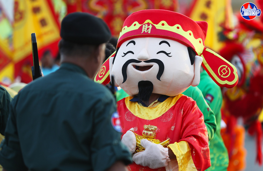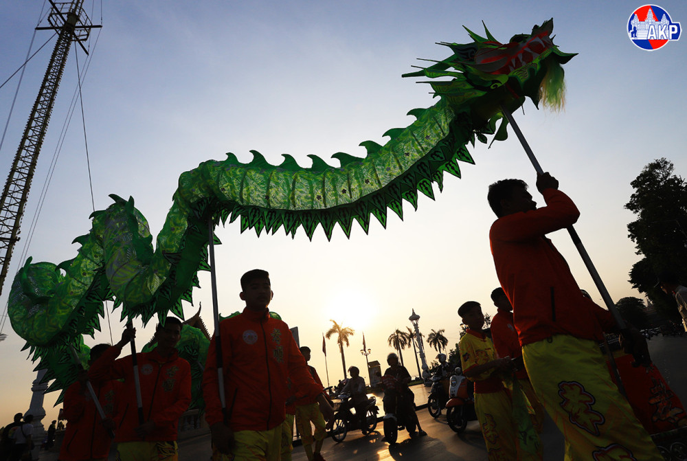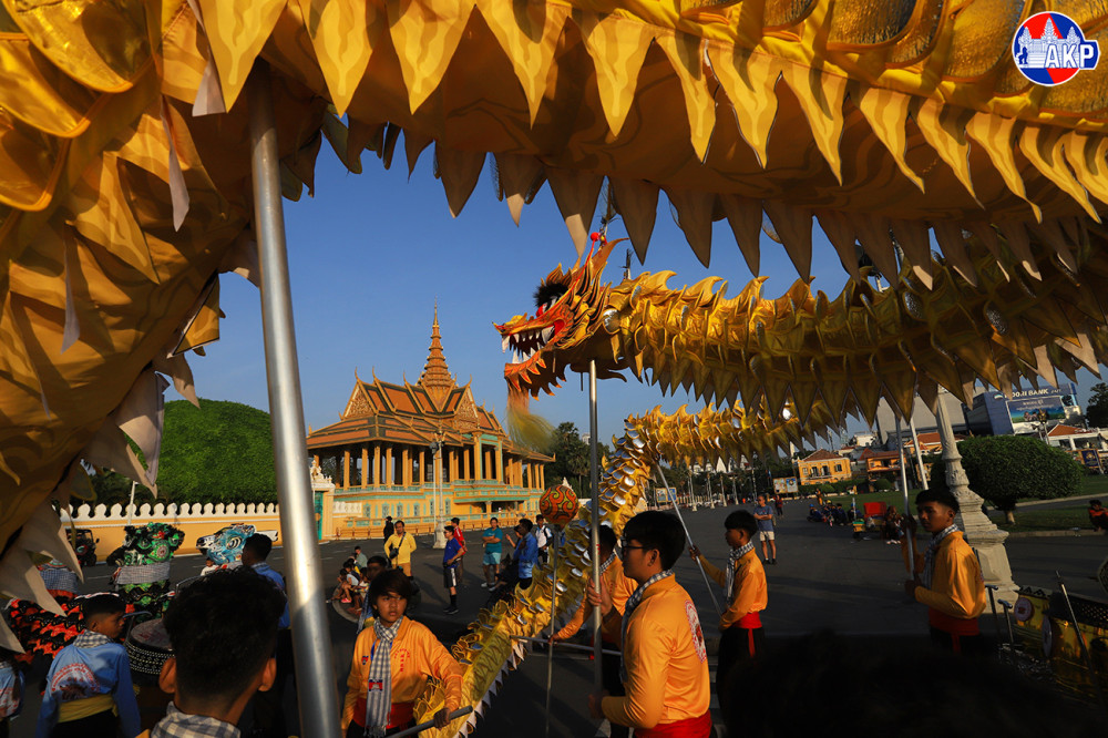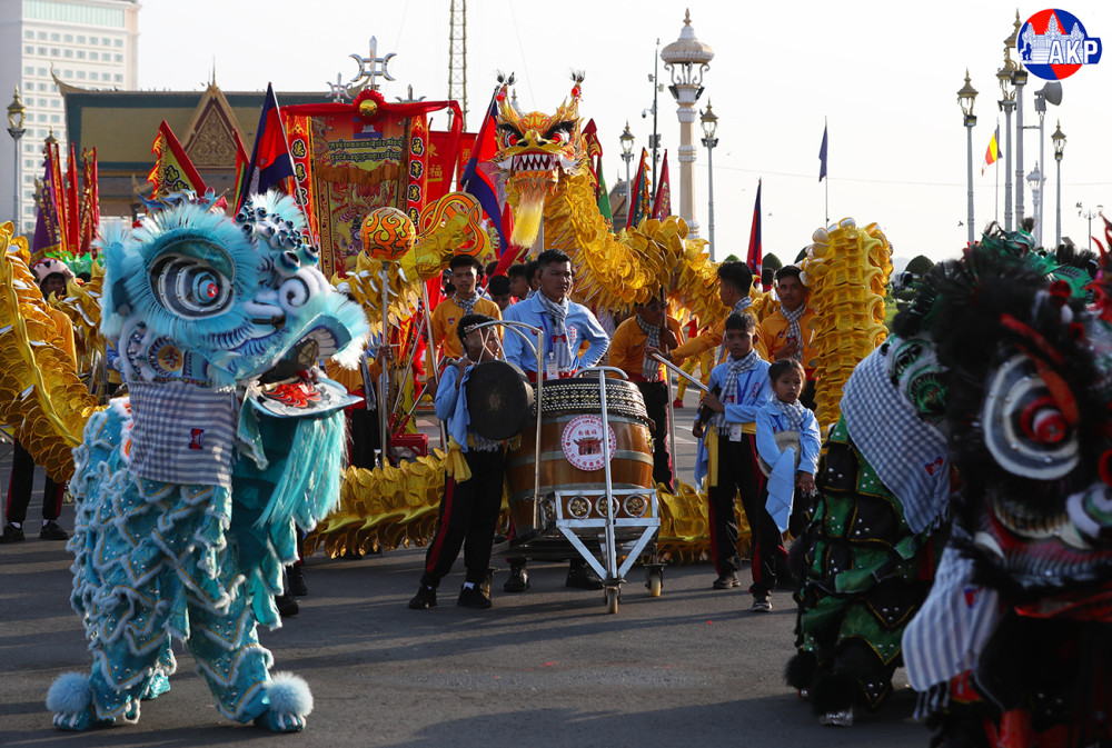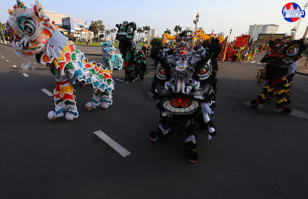 Eight lion and dragon dance troupes take part in ritual performances and offerings to Preah Ang Dangker and other deities in front of the Royal Palace’s Prasat Tevea Vinichay in Phnom Penh this morning on the occasion of the 2026 Chinese New Year celebrations.