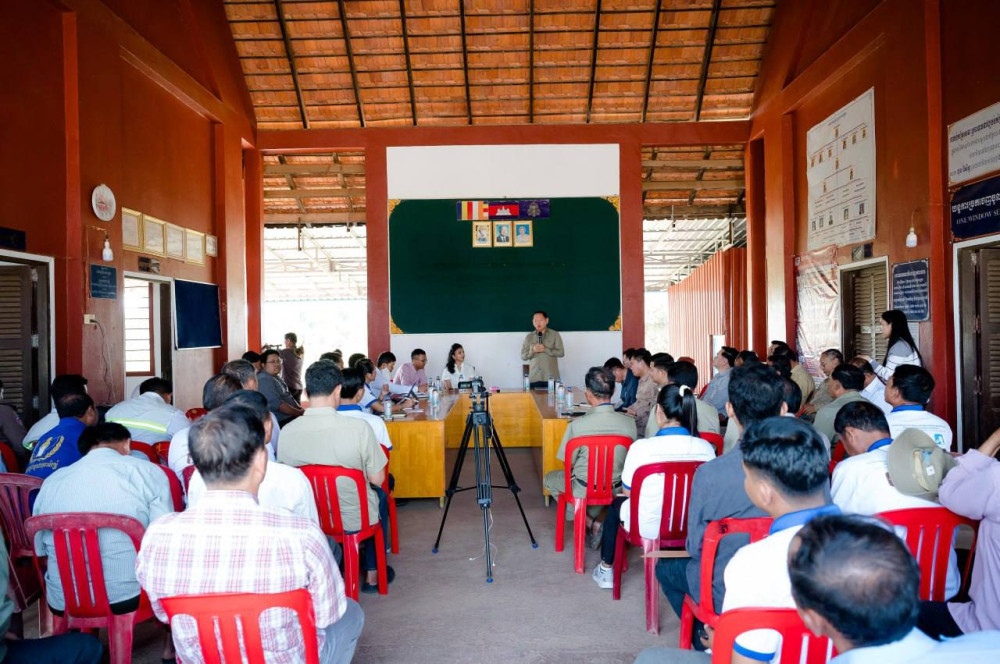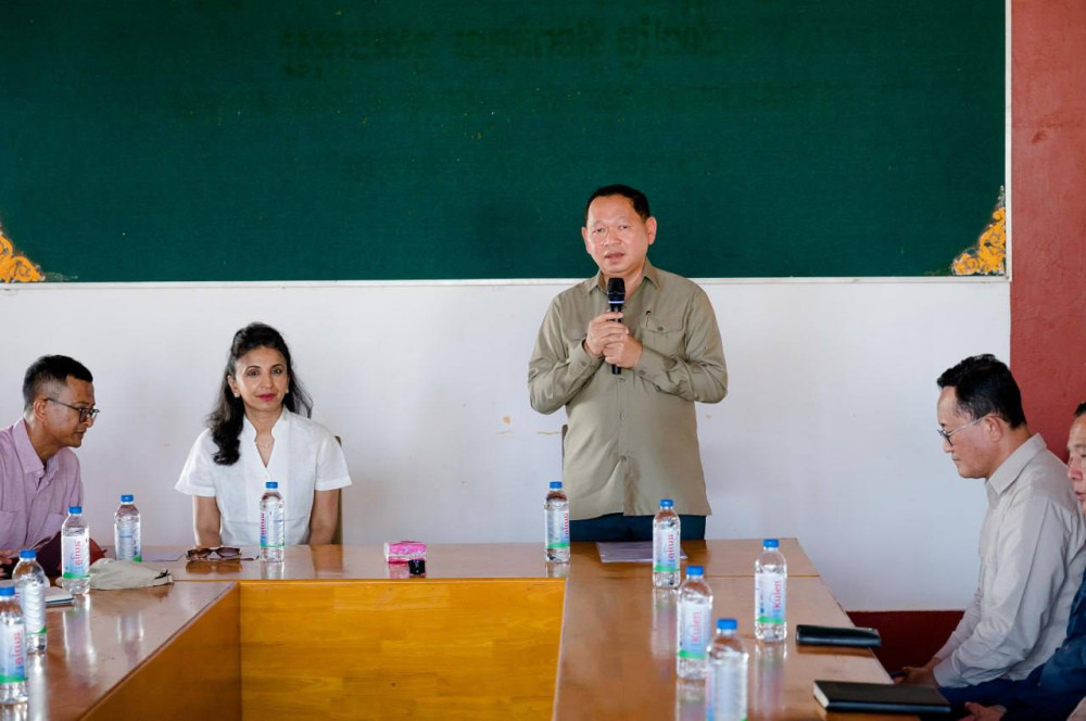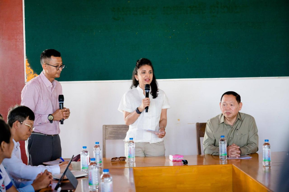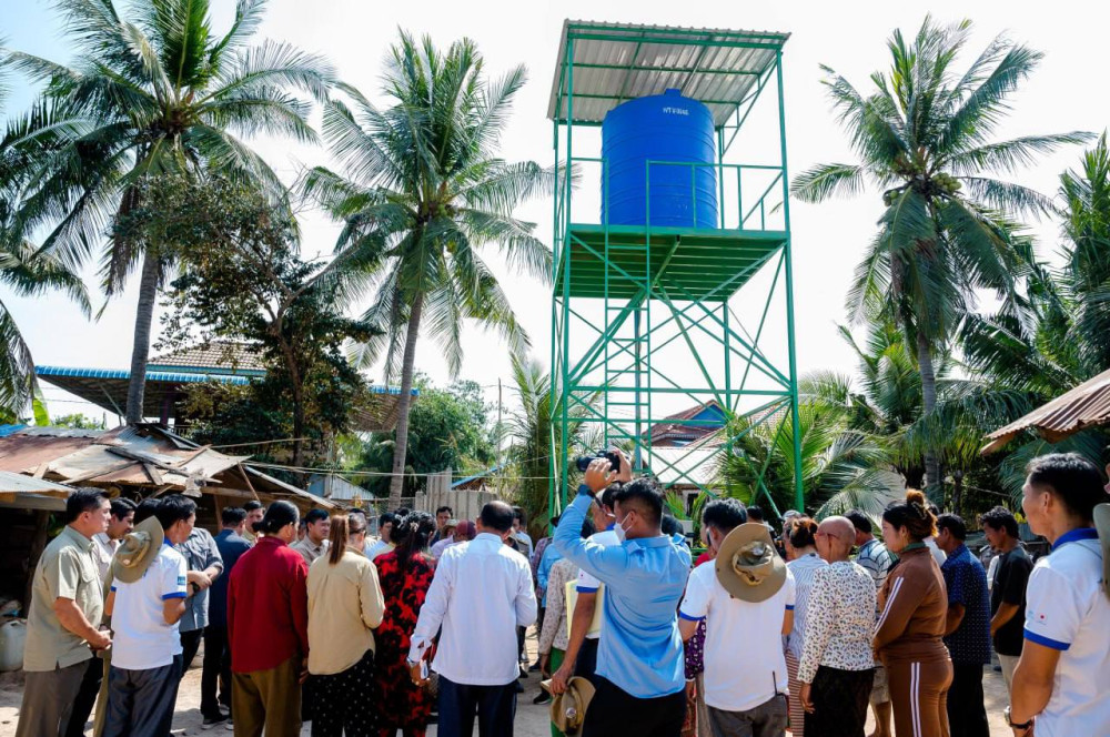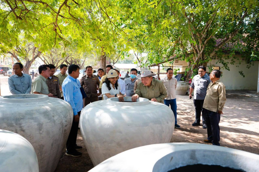 H.E. Chhay Rithisen (R, Pic. 1), Minister of Rural Development, and Ms. Yasmin Siddiqi (C, Pic. 1), Country Director of the Asian Development Bank (ADB) for Cambodia, greet local people while they were inspecting the progress of development programme implementation in the rural water supply and sanitation sector in Kampong Speu province on Feb. 16.