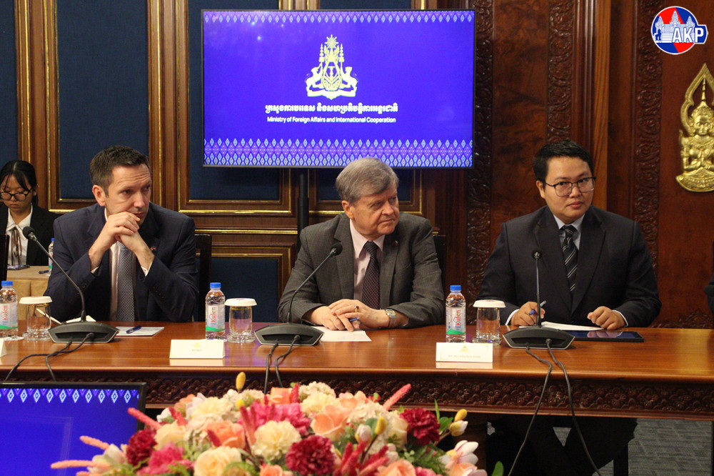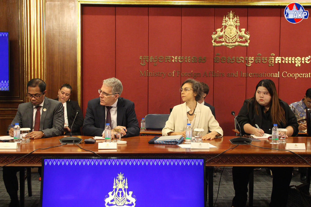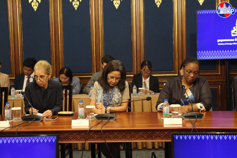 H.E. Mrs. Eat Sophea (L, Pic. 1), Acting Minister of Foreign Affairs and International Cooperation, and H.E. Santepundit Chhay Sinarith, Senior Minister and Head of the Secretariat of the Commission for Combating Online Scams (CCOS), chair here this morning a presentation on Cambodia’s campaign against online scams to foreign diplomats in Cambodia.