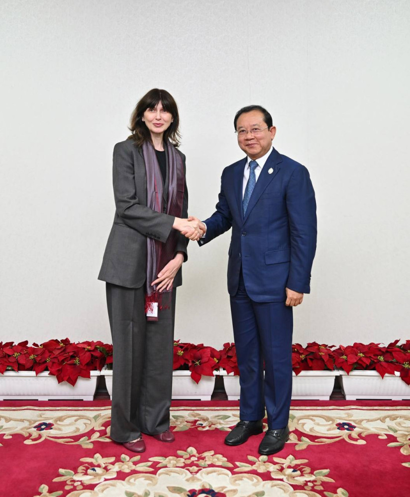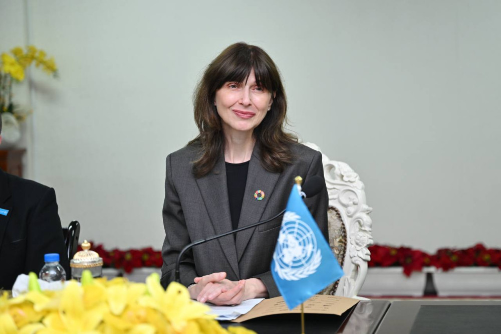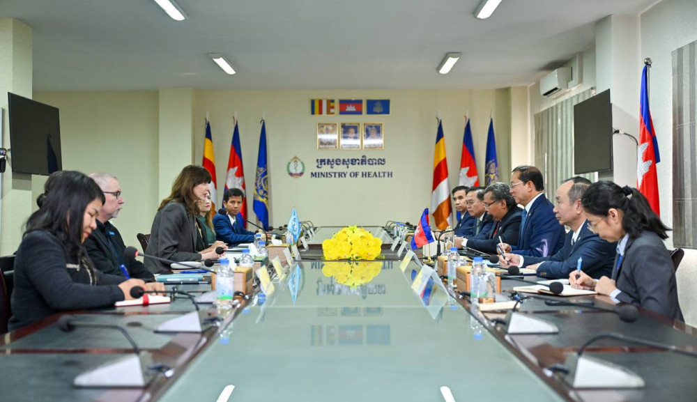H.E. Professor Chheang Ra (R, Pic. 1), Minister of Health, greets H.E. Ms. Vladanka Andreeva, the newly appointed United Nations Resident Coordinator in Cambodia, prior to their courtesy meeting, at the ministry’s headquarters in Phnom Penh this morning.