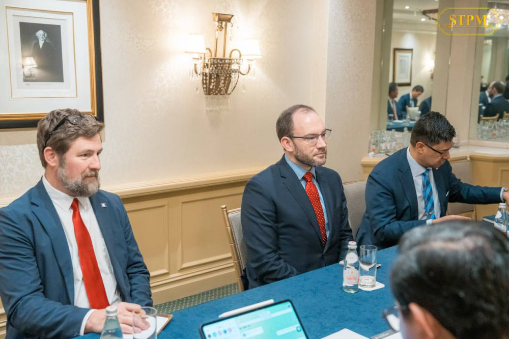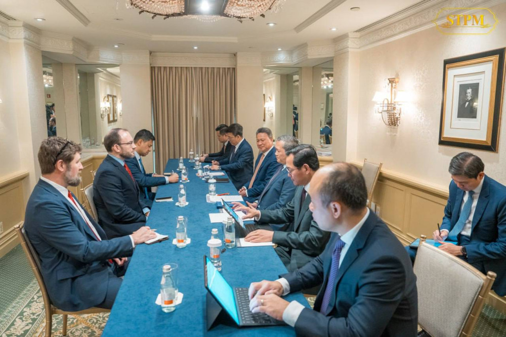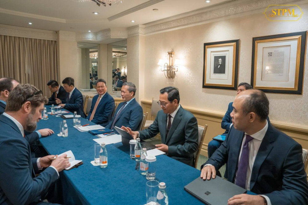 Cambodian Prime Minister Samdech Moha Borvor Thipadei Hun Manet (R, Pic. 1) poses for a photo with Dr. Andy Baker, U.S. Deputy National Security Advisor, prior to a courtesy call and discussion on the morning of Feb. 20 (U.S. time) in Washington D.C., on the sidelines of the inaugural meeting of the Board of Peace.