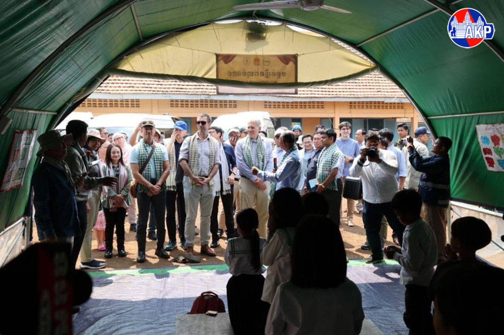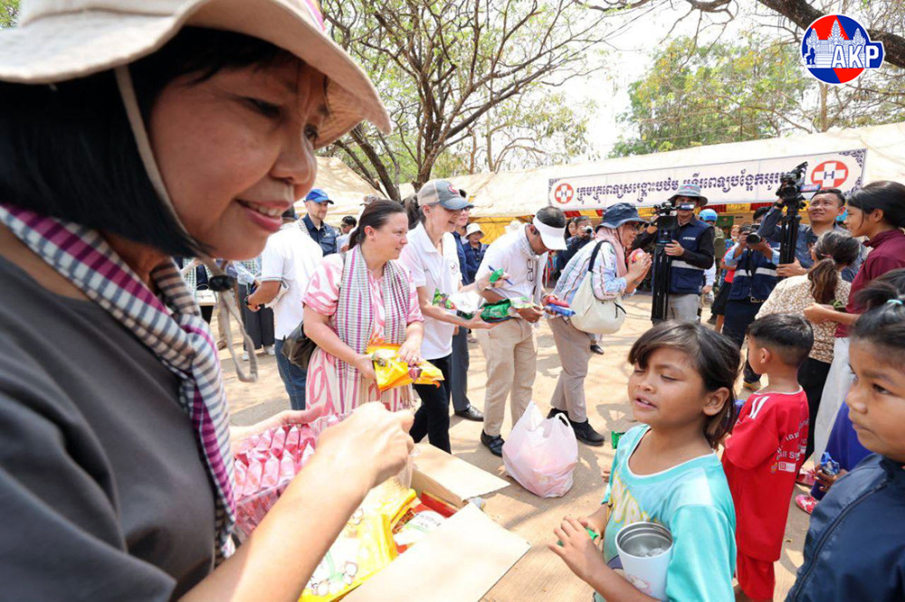 H.E. Mrs. Eat Sophea, Acting Minister of Foreign Affairs and International Cooperation, led a delegation of foreign diplomats and representatives of international agencies accredited to Cambodia on a field visit on Monday to assess the situation of displaced persons at the Wat Chan Sy Samaki Ratanaram Safety Centre in Kob commune, O’Chrov district, Banteay Meanchey province.