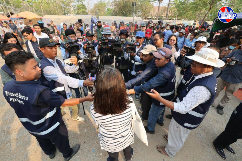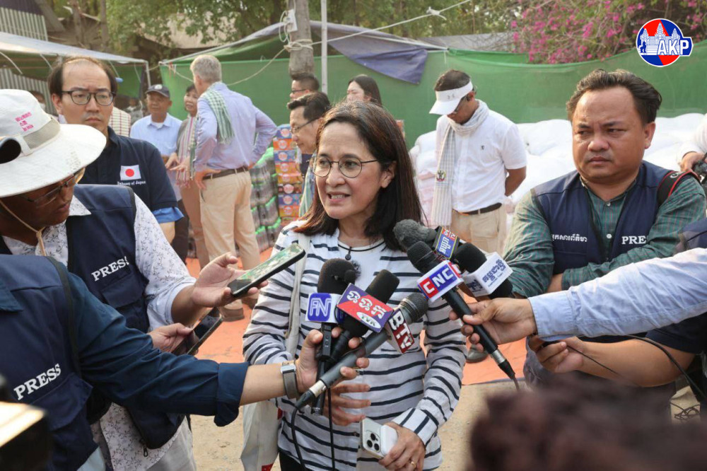 Ambassador of the Philippines to Cambodia H.E. Ms. Flerida Ann Camille P. Mayo (Pic. 1) and Mr. Matsuda Junsaku (Pic. 4), Counsellor at the Embassy of Japan in Cambodia, give separate interviews to journalists in Banteay Meanchey province this afternoon following their on-site visit to assess the situation of displaced civilians and inspect violations by Thai forces within Cambodia’s sovereign territory.