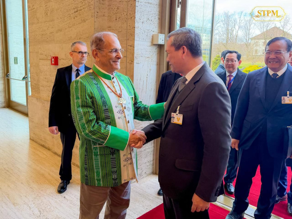 Samdech Moha Borvor Thipadei Hun Manet (R), Prime Minister of the Kingdom of Cambodia, shakes hands with H.E. José Ramos-Horta, President of Timor-Leste, prior to their informal meeting, on the sidelines of their working visit to the United Nations in Switzerland on Monday morning (Swiss time).