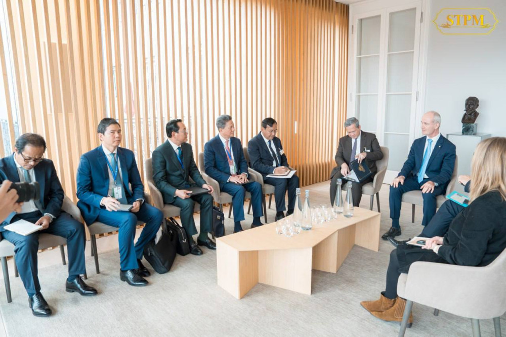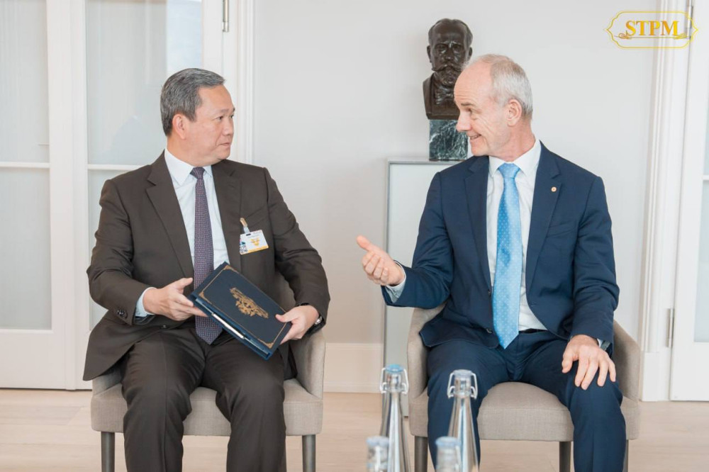 Cambodia’s Prime Minister Samdech Moha Borvor Thipadei Hun Manet (L, Pic. 1), shakes hands with Mr. Gilles Carbonnier, Vice President of the International Committee of the Red Cross (ICRC), prior to their bilateral discussion in Switzerland on Monday afternoon (Swiss time).