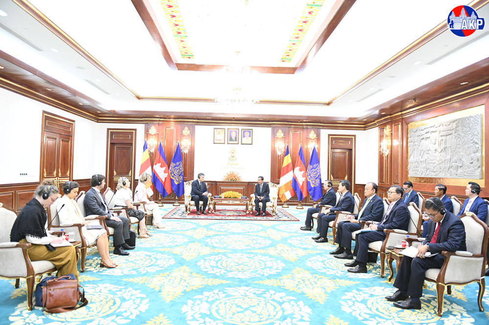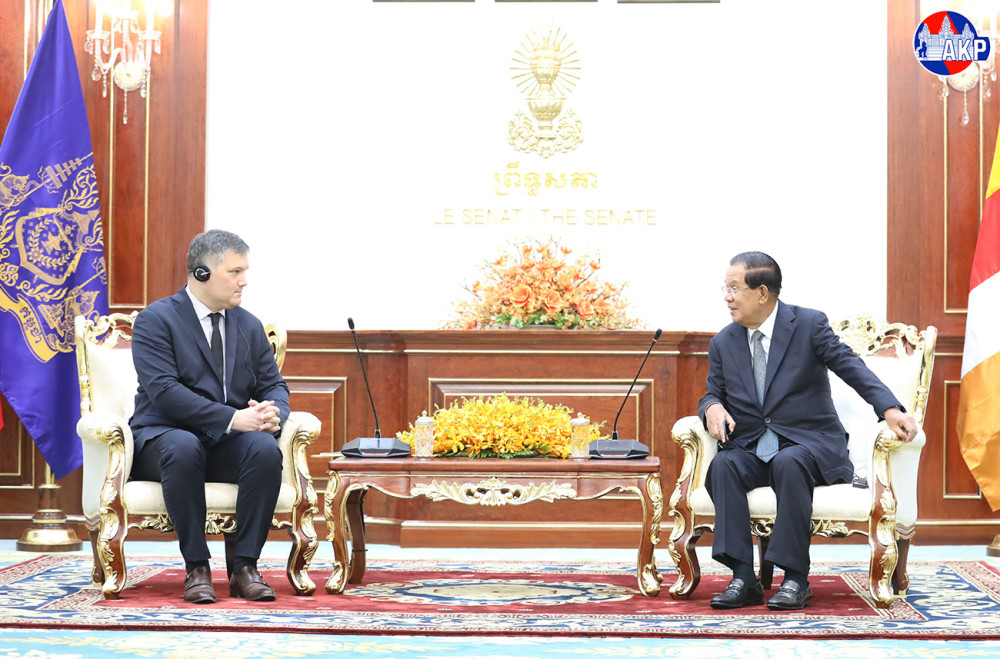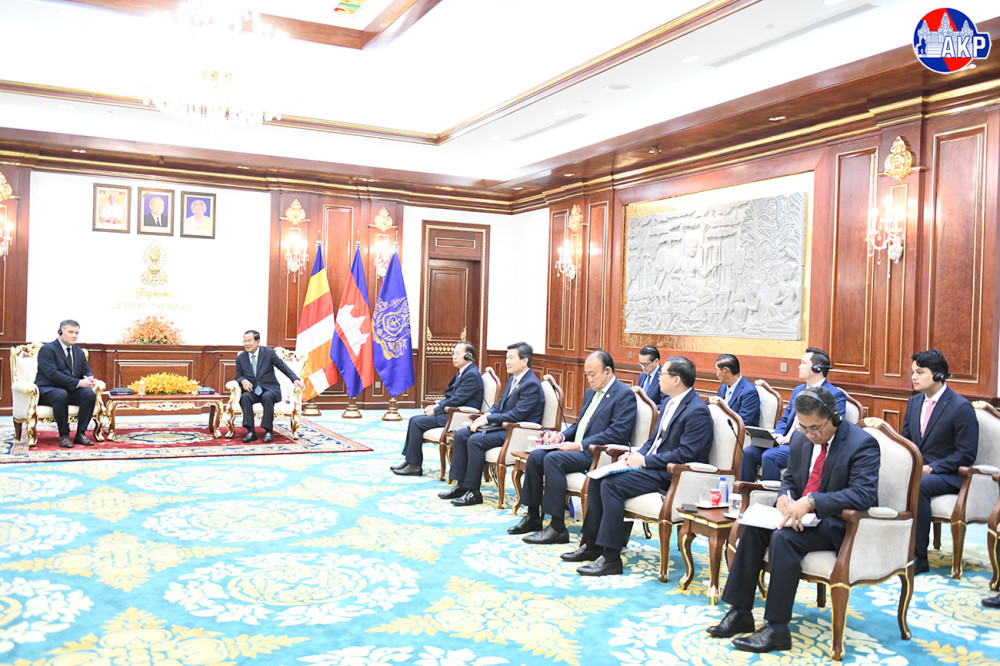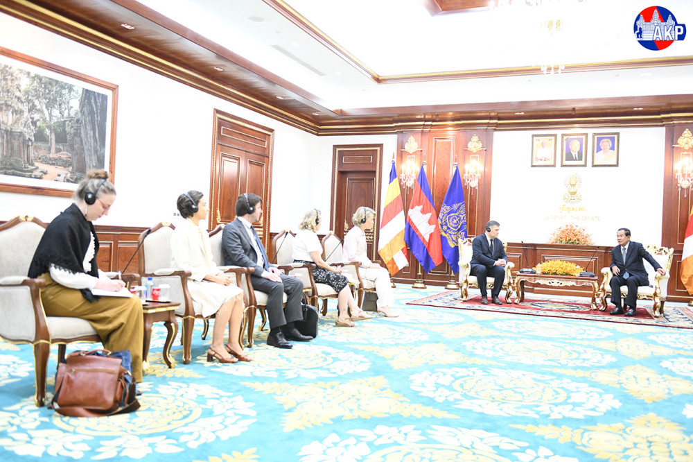 Samdech Akka Moha Sena Padei Techo Hun Sen (R, Pic. 1), President of the Senate of the Kingdom of Cambodia, greets visiting H.E. Thomas LAM, President of the France-Cambodia Parliamentary Friendship Group, prior to their courtesy meeting at the Senate’s Solidarity Palace in Phnom Penh this morning.