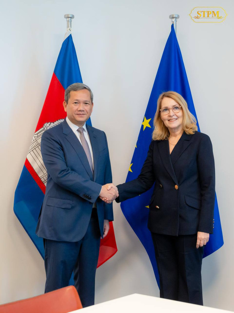 Samdech Moha Borvor Thipadei Hun Manet (L, Pic. 1), Prime Minister of the Kingdom of Cambodia, meets with H.E. Ms. Christel Schaldemose, Vice President of the European Parliament, in Belgium on the morning of Feb. 25 (Belgian time).
