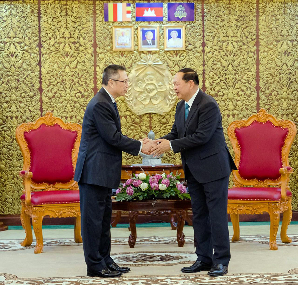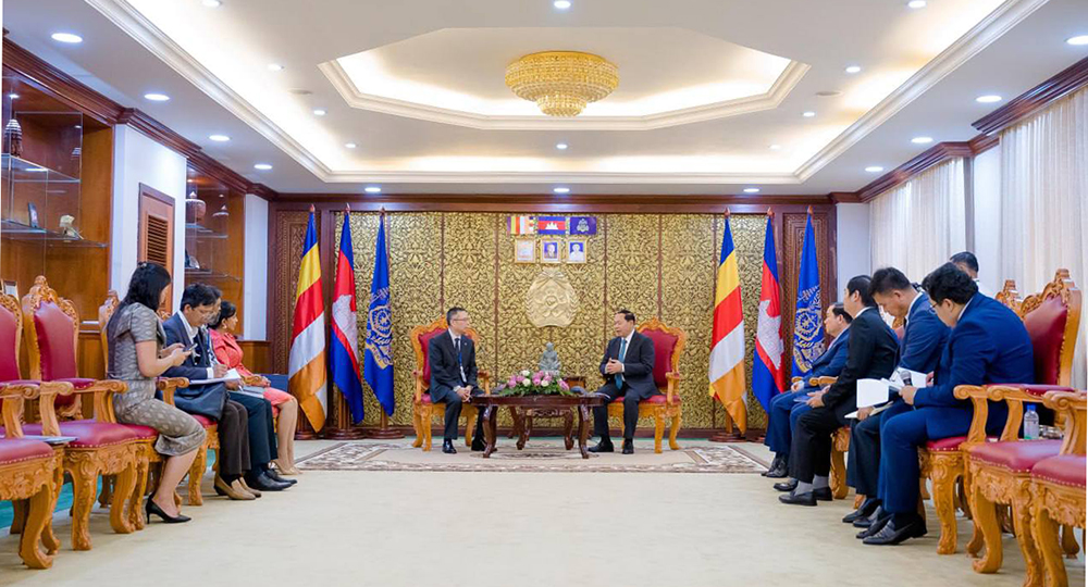 Cambodia’s Minister of Rural Development H.E. Chhay Rithisen (R, Pic. 1) holds talks with Mr. Nianshan Zhang, Director General for the Southeast Asia Department at the Asian Development Bank (ADB), at the Ministry in Phnom Penh this morning.