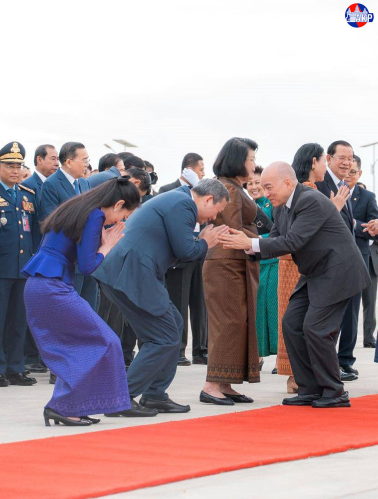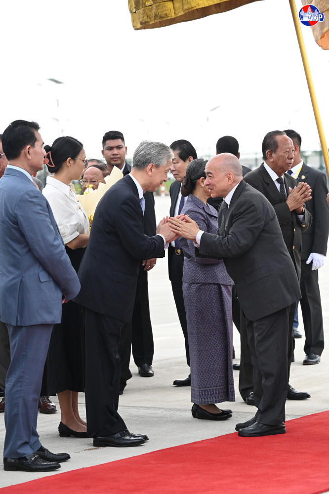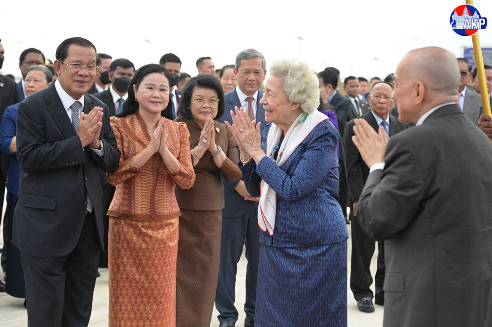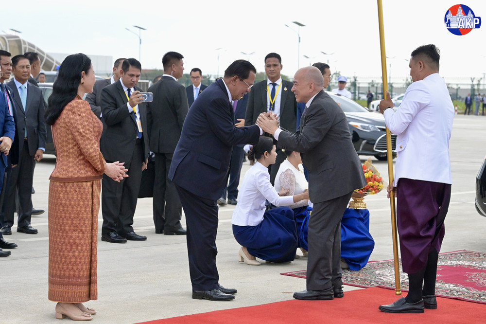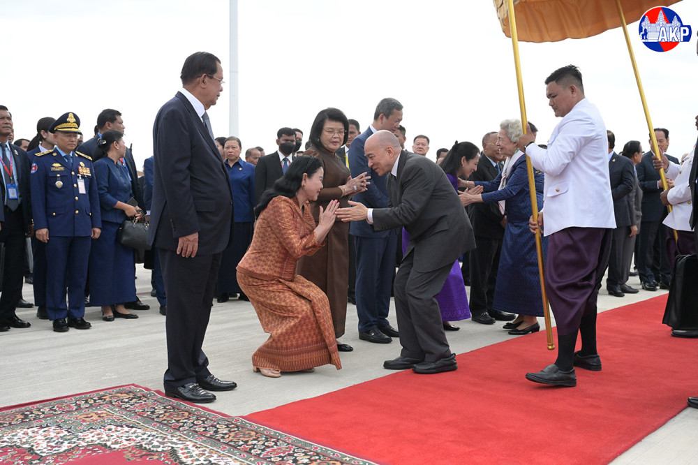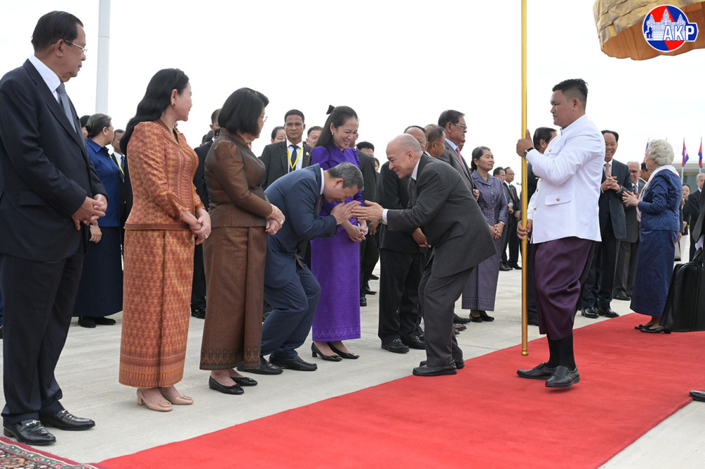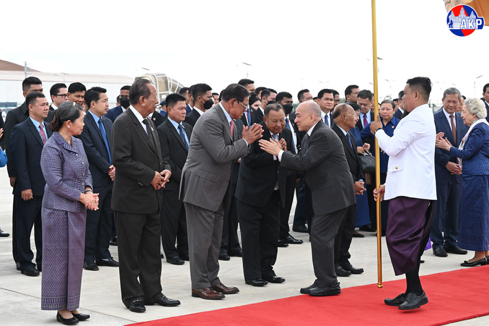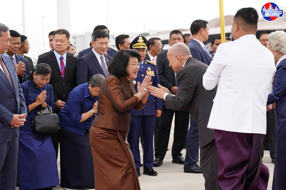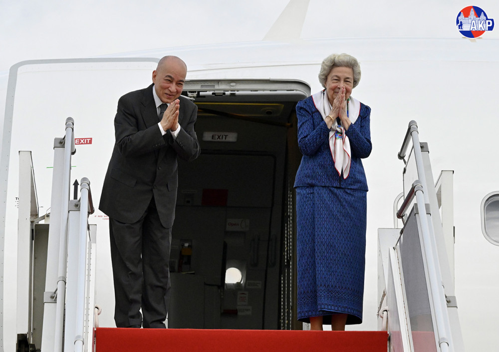 His Majesty Preah Bat Samdech Preah Boromneath Norodom Sihamoni, King of Cambodia, and Her Majesty Queen Mother Norodom Monineath Sihanouk leave Techo International Airport this morning for Beijing for their routine medical checkup.