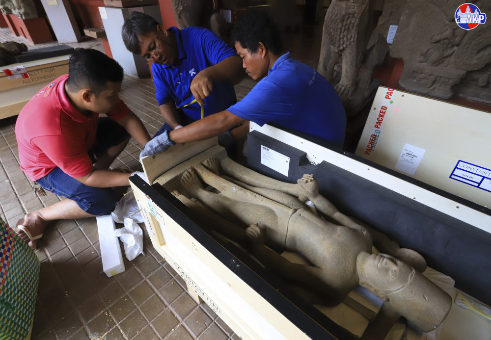 The Ministry of Culture and Fine Arts expressed gratitude to Cambodian leaders for their support, as well as to UK authorities, international partners, legal advisors, and private donors who assisted in the recovery and transportation of the artifacts.