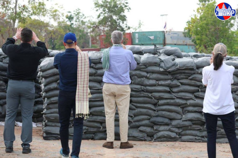 From the visit site at Chouk Chey village and Prey Chan village, the delegation could catch a glimpse of the areas beyond the shipping-containers blockades, where a similar site visit was conducted in August last year. At the Boeung Trakuon locality, the delegation examined the homes, shops and public facilities in the small township, destroyed during the fighting. They observed from a short distance the shipping containers blocking road access to Boeung Trakuon regional border checkpoint, located approximately one kilometre away.