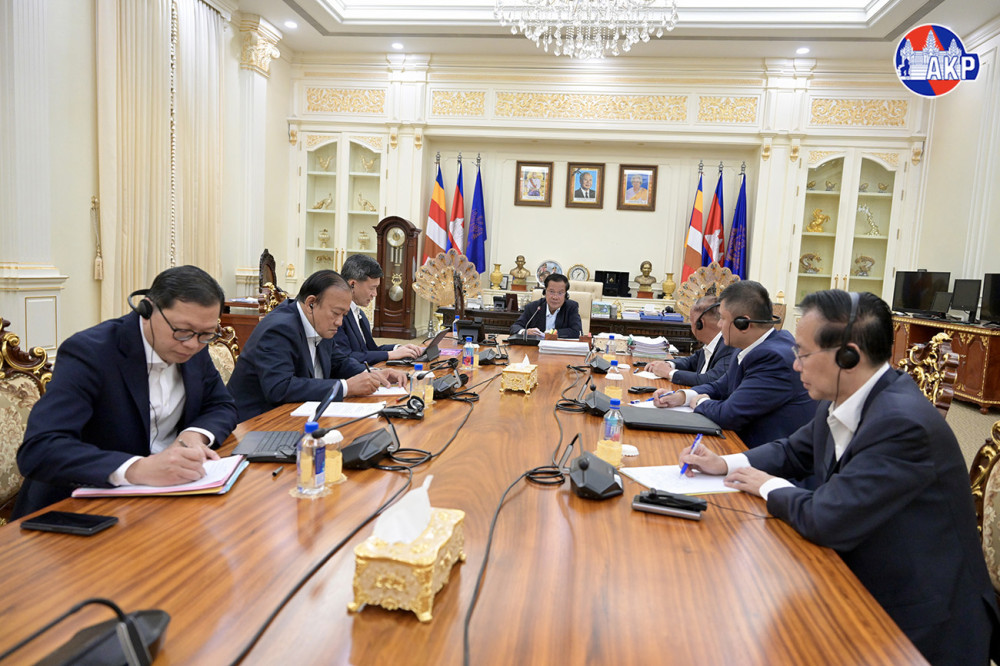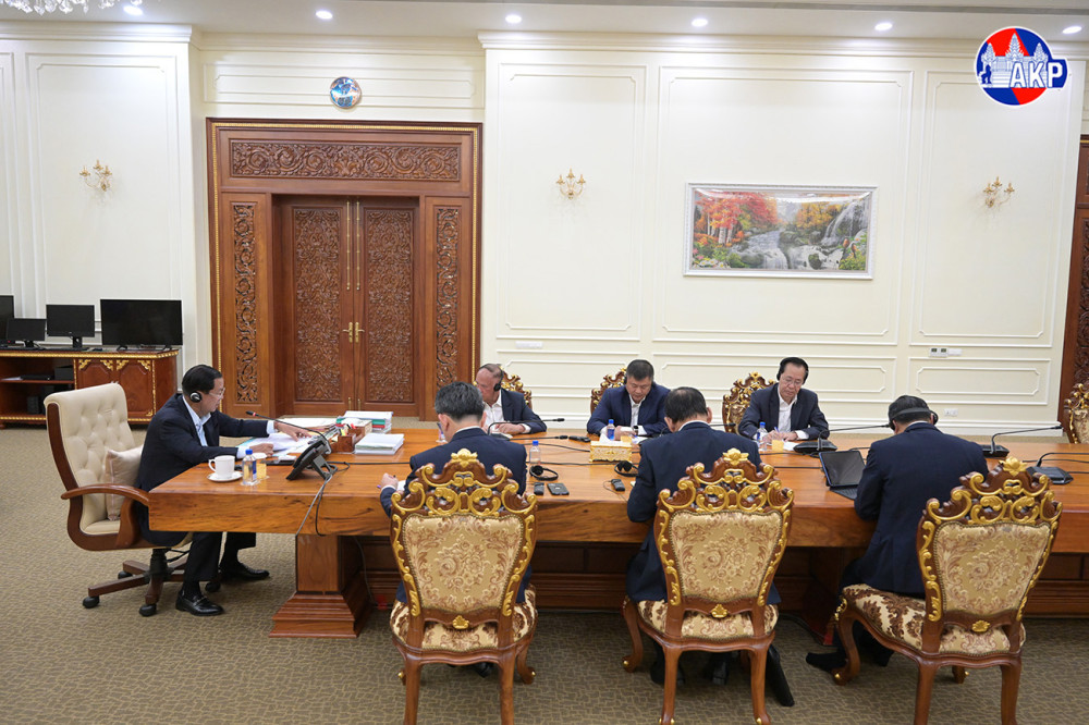 Samdech Akka Moha Sena Padei Techo Hun Sen (Pic. 1), Acting Head of State of the Kingdom of Cambodia, holds a telephone conversation with H.E. Volodymyr Zelenskyy, President of Ukraine, at his residence in town, Kandal province this afternoon.