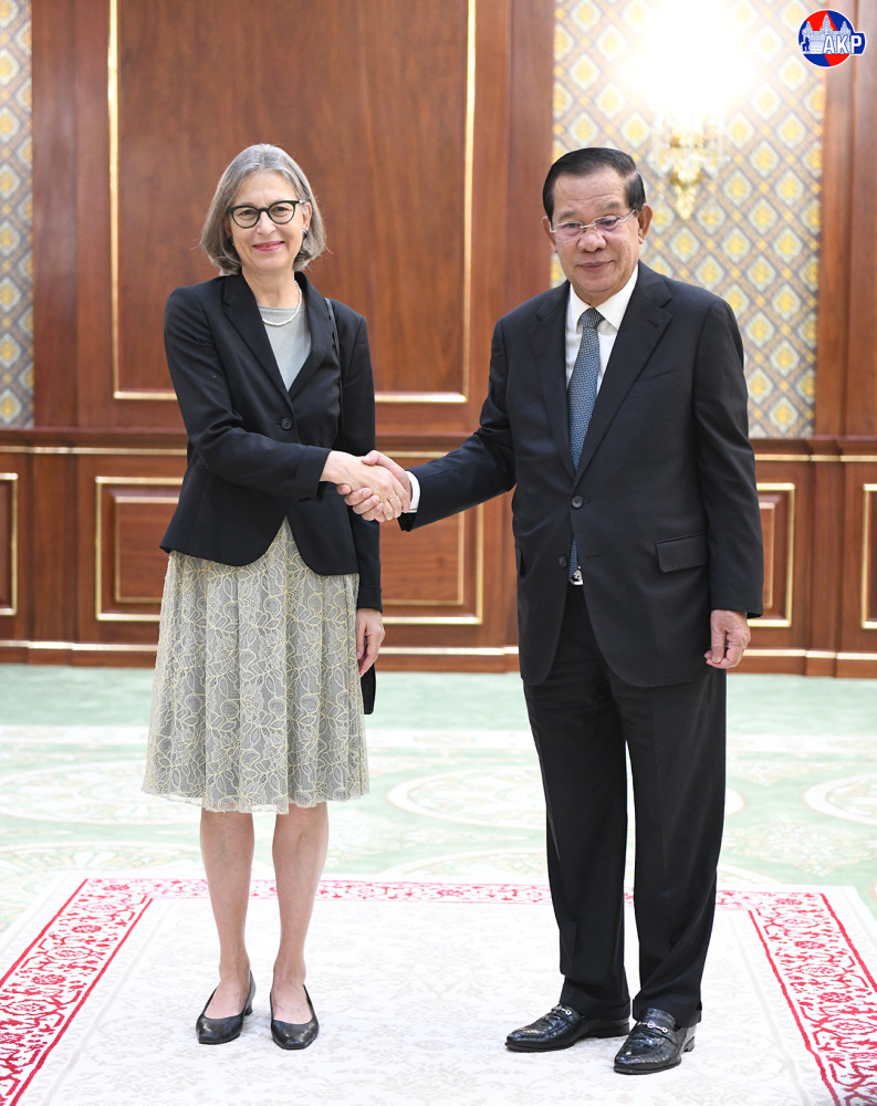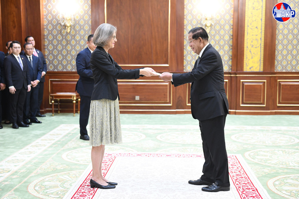 Cambodia’s Acting Head of State, Samdech Akka Moha Sena Padei Techo Hun Sen (R, Pic. 1), receives credentials from H.E. Ms. Katharina WIESER, newly appointed Austrian Ambassador to the Kingdom of Cambodia, at the Solidarity Palace in Phnom Penh this morning.