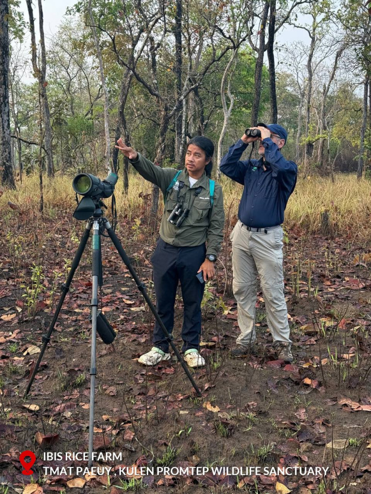 The delegation later travelled to visit Kriel Lodge in Tmat Paeuy Community Protected Area in Kulen Prumtep Wildlife Sanctuary, one of the last strongholds for some of Cambodia’s rarest bird species, where the group stayed during the visit.