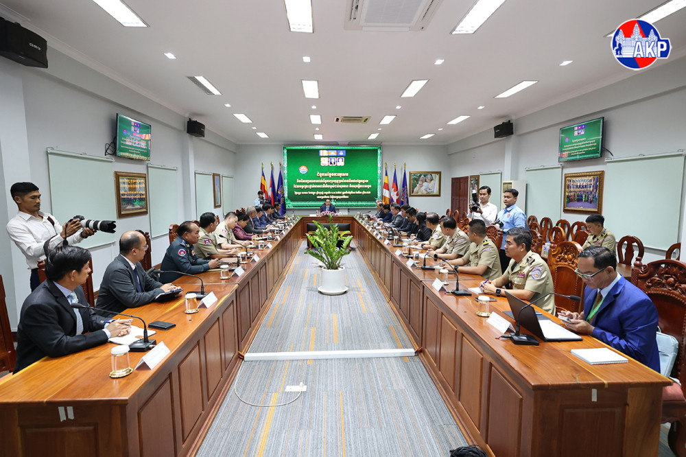 H.E. Neth Pheaktra (Pic. 1), Minister of Information, holds here this afternoon a working meeting with a delegation from the Cambodian Counter Counterfeit Committee, led by H.E. Nov Leakhena (Pic. 2), Secretary of State at the Ministry of Interior and Chairman of the Committee.