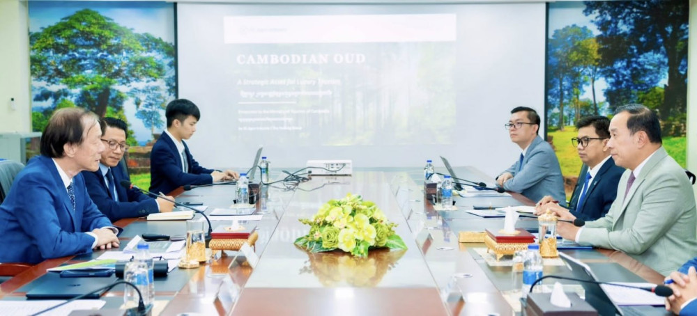 AKP Phnom Penh, March 20, 2026 -- H.E. Huot Hak, Minister of Tourism, received here on Mar. 19 Oknha Dr. Nang Sothy, Chairman of THY HOLDING CO., LTD., along with his colleagues, for a working discussion on a project to develop luxury souvenirs made from agarwood, including perfumes and cosmetics aimed at Arab tourists.