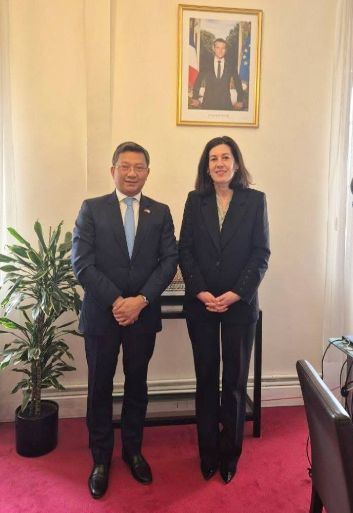 The statement was made by Cambodian Ambassador to France H.E. Luy David following his meeting with Ms. Julie Le Saos, Adviser for the Americas, Asia, and Oceania to French President H.E. Emmanuel Macron, on Mar. 23.