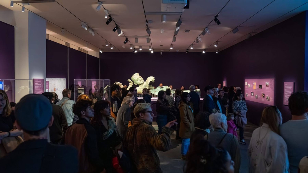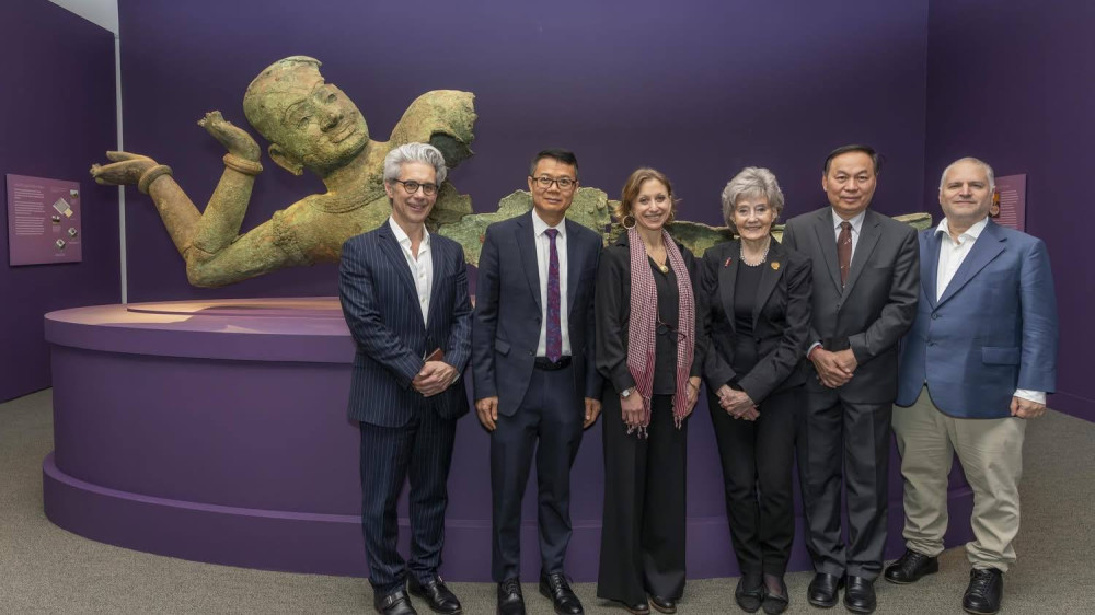 The exhibition features an impressive large-scale sculpture from Southeast Asia, on loan from the National Museum of Cambodia, highlighting the richness of Cambodia’s cultural heritage.