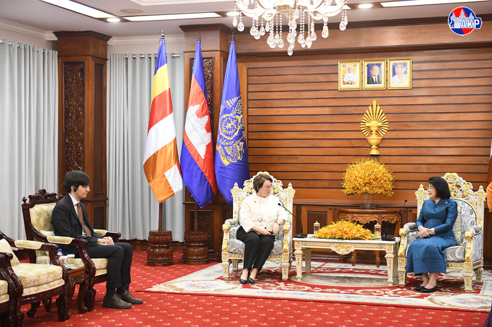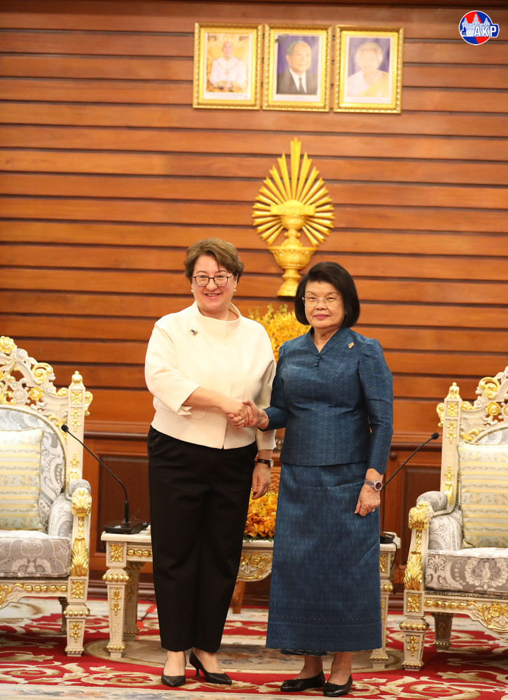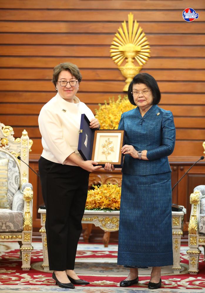 Cambodian National Assembly (NA) President, Samdech Maha Rathsapheathika Thipadei Khuon Sudary (L, Pic. 1), greets outgoing Turkish Ambassador to Cambodia, H.E. Ms. Ulkü Kocaefe, prior to their farewell meeting here at the NA Palace this morning.