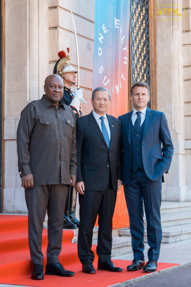 Cambodia’s Prime Minister Samdech Moha Borvor Thipadei Hun Manet (R, Pic. 1) is greeted by H.E. Emmanuel Macron, President of the French Republic, prior to the High-Level Meeting on the Global Health Architecture with the French President, H.E. Tedros Adhanom Ghebreyesus, World Health Organisation (WHO) Director-General, together with other Heads of State and Government, in France on April 7.