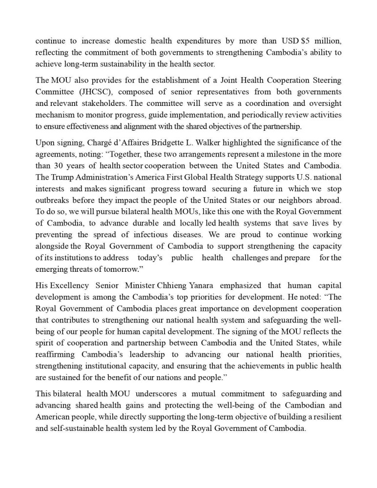 Joint Cambodia-U.S. Press Release on Bilateral Health Cooperation MOU and Data Sharing Agreement