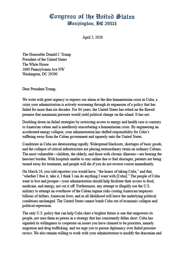 The letter is led by Gregory Meeks, Ranking Member of the House Foreign Affairs Committee, and Senator Tim Kaine, Ranking Member of the Senate Foreign Relations Subcommittee on the Western Hemisphere. In the document, the legislators emphasize the need to review current measures, which they describe as harmful and counterproductive.