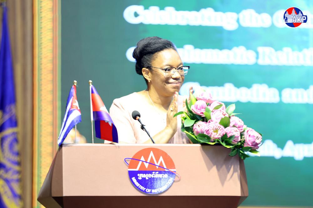 The event was also attended by H.E. Nin Saphon, Chairwoman of the 9th Commission of the National Assembly and President of the Cambodia-Cuba Parliamentary Friendship Group; H.E. Dr. Ing Kantha Phavi, Minister of Women’s Affairs; H.E. Hem Vanndy, Minister of Industry, Science, Technology and Innovation; ambassadors; senior ministry leaders; and many other distinguished guests.